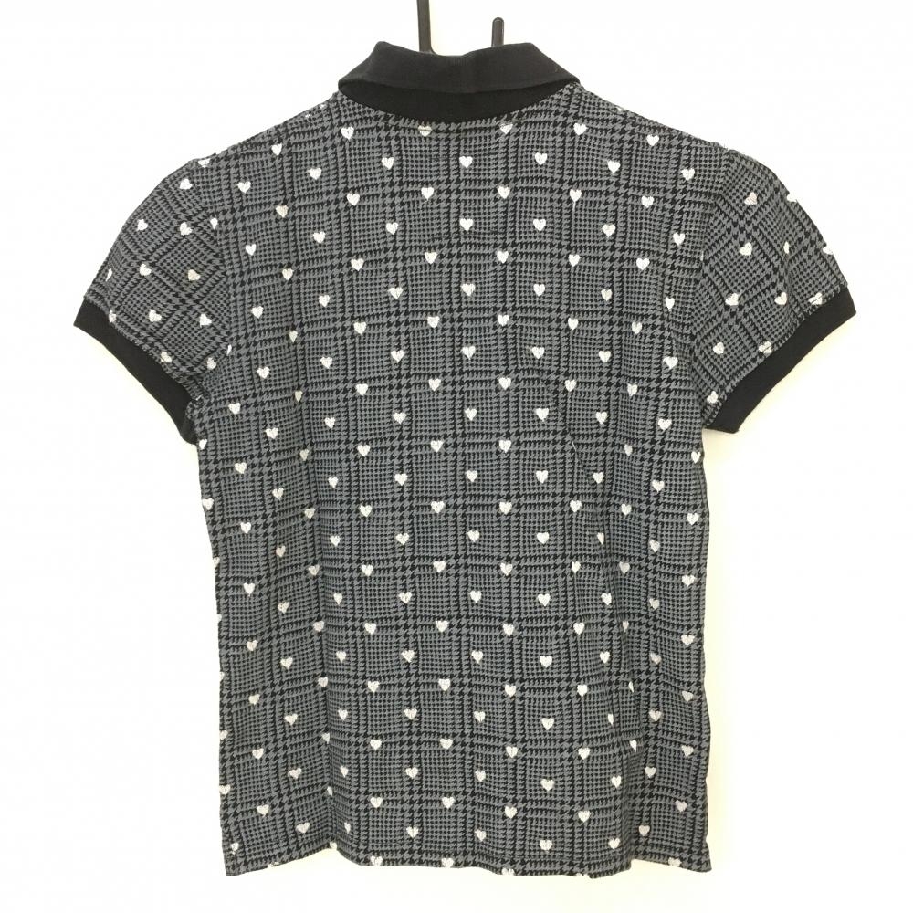 マークアンドロナ 半袖ポロシャツ グレー×黒 グレンチェック ハート柄刺しゅう レディース S ゴルフウェア MARK&LONA