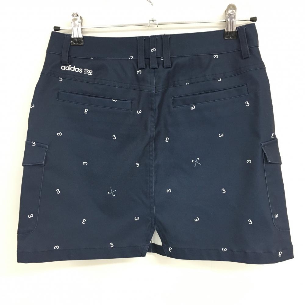 【美品】アディダス カーゴスカート ネイビー 総柄 バックロゴ刺しゅう レディース S ゴルフウェア adidas
