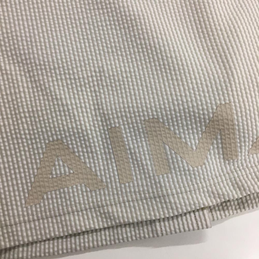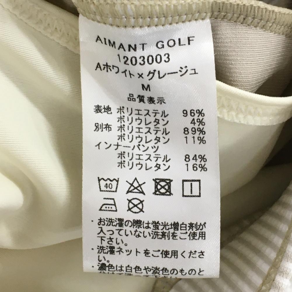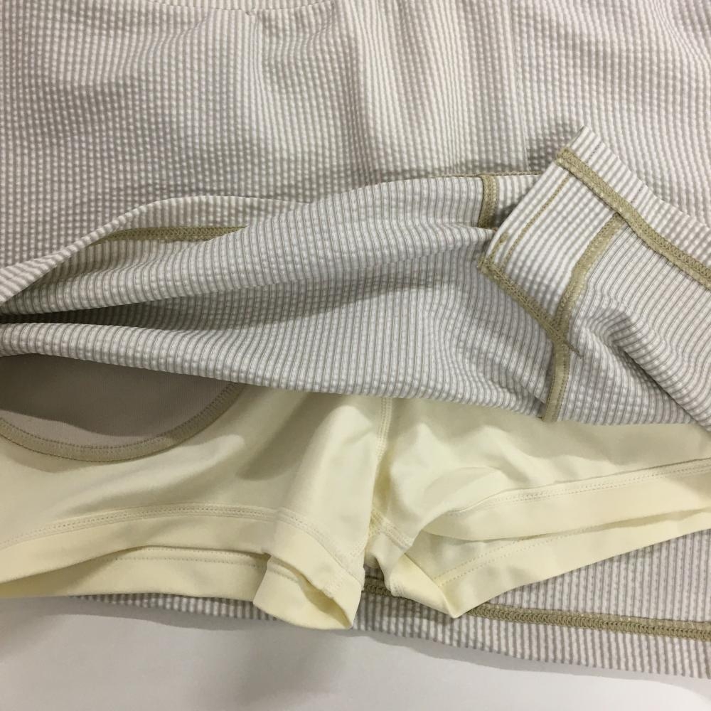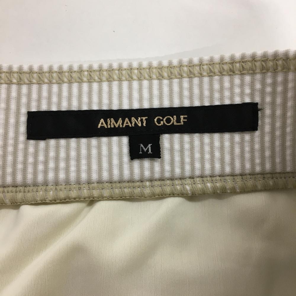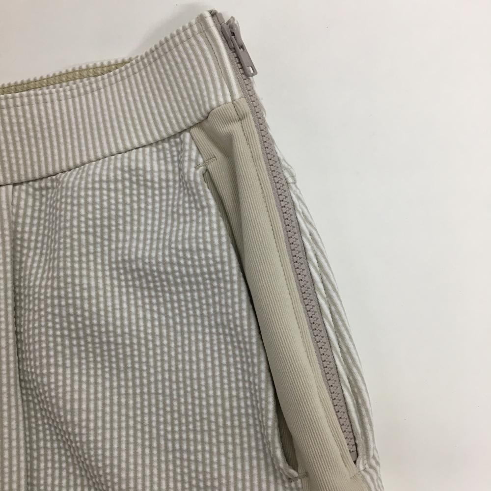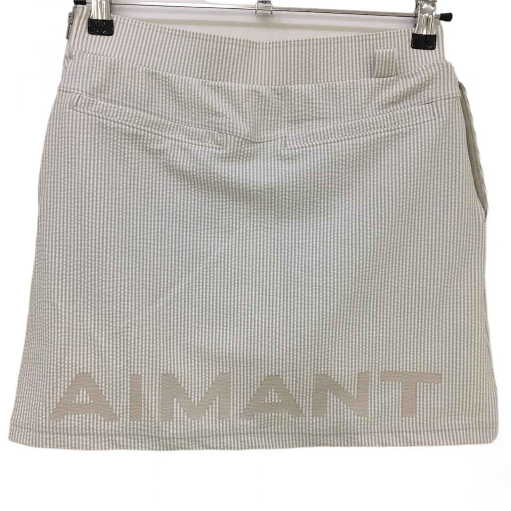 【超美品】エマンゴルフ スカート ベージュ×白 ストライプ ストレッチ サッカー生地 レディース M ゴルフウェア AIMANT GOLF
