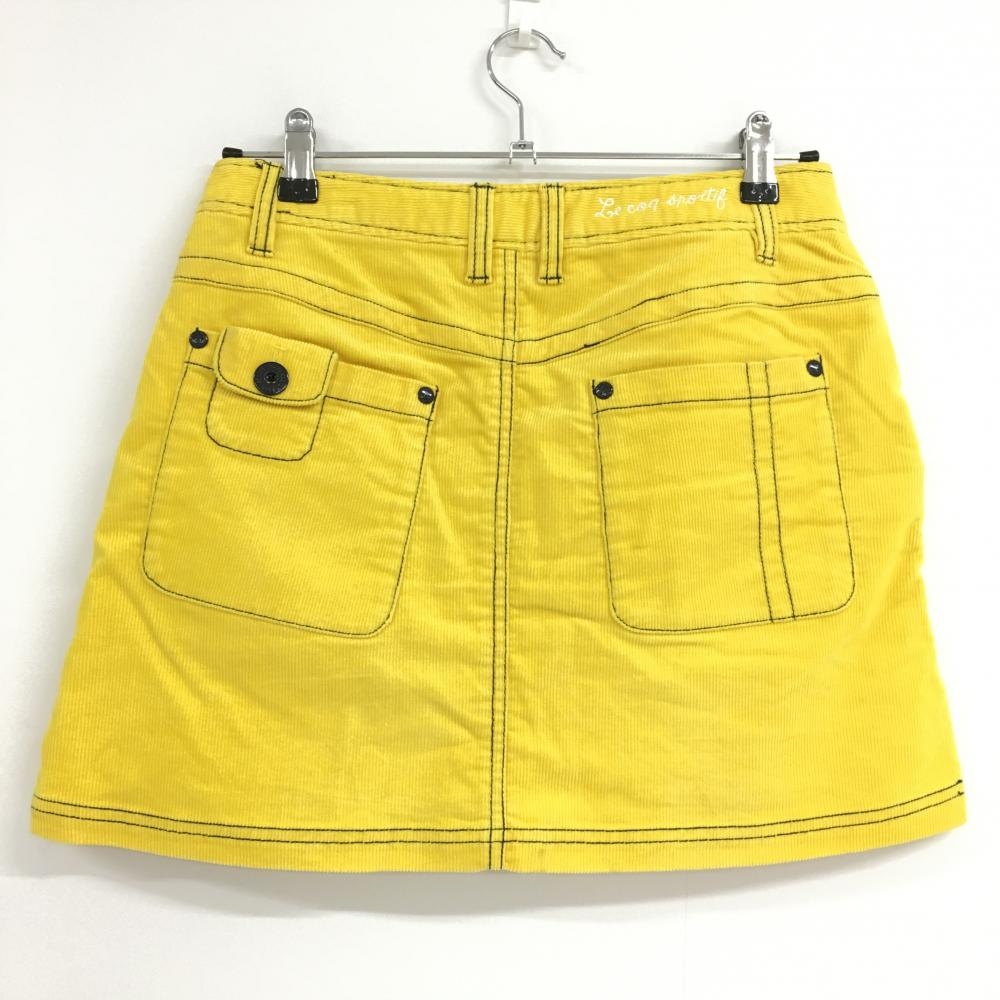 【美品】ルコック コーデュロイスカート イエロー ステッチ インナーパンツ付 レディース 9 ゴルフウェア le coq sportif