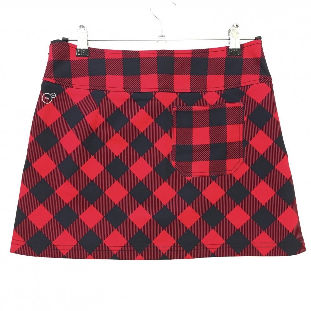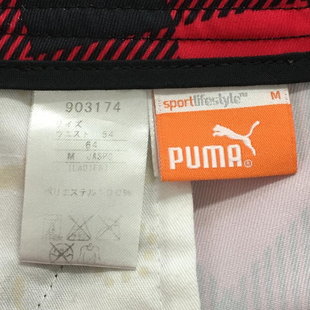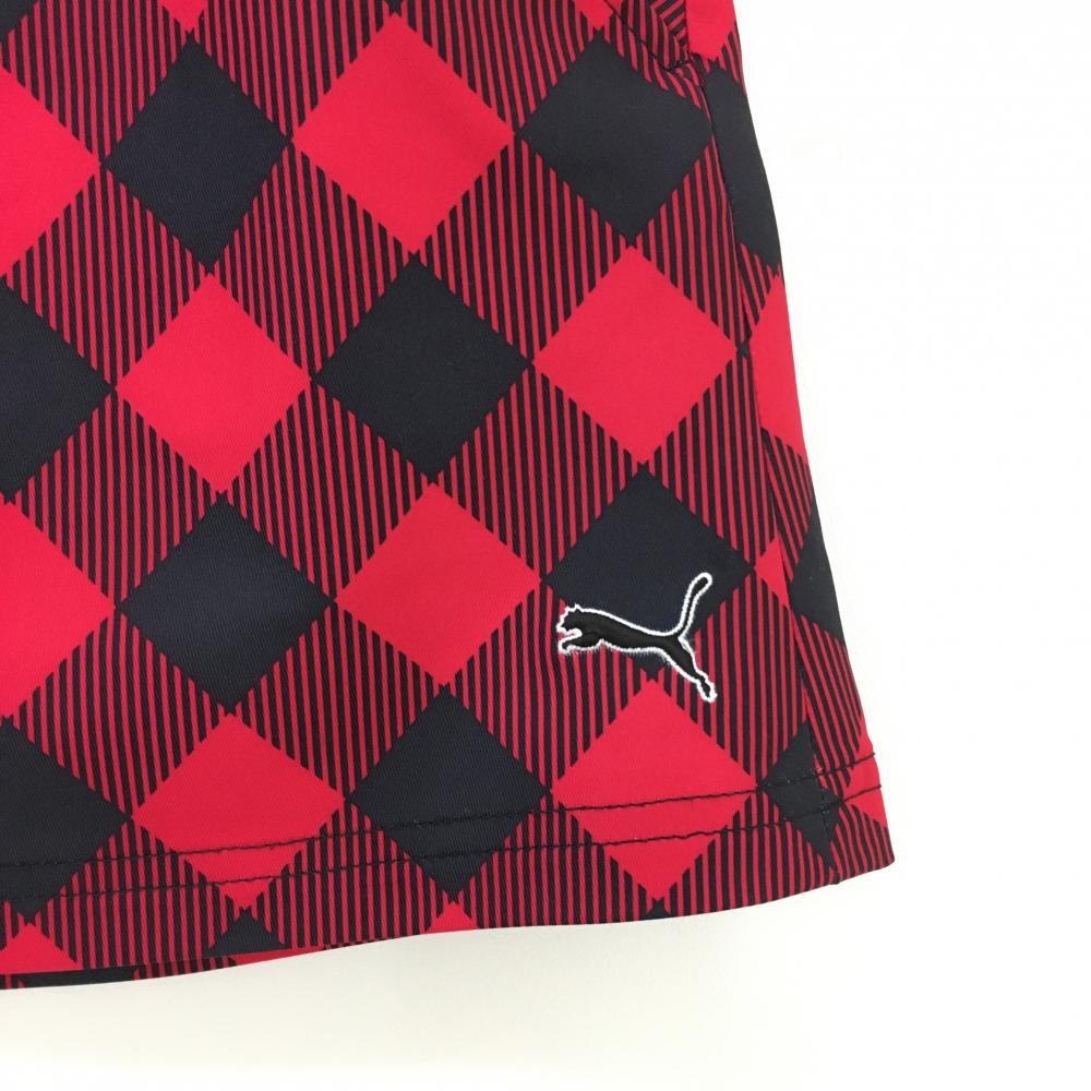 【超美品】プーマ スカート ピンクレッド×黒 格子チェック柄 ロゴ刺しゅう レディース M ゴルフウェア PUMA
