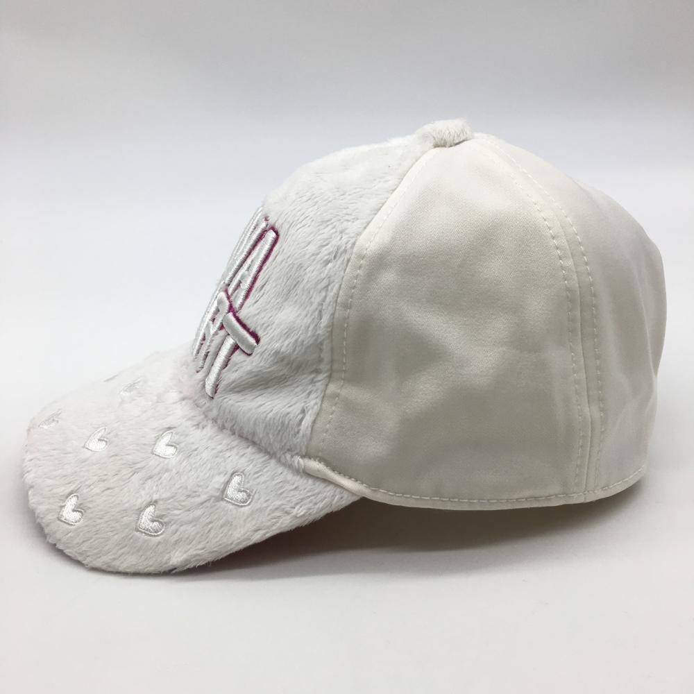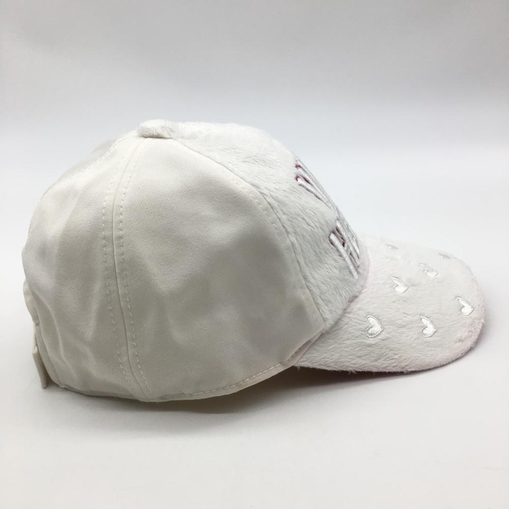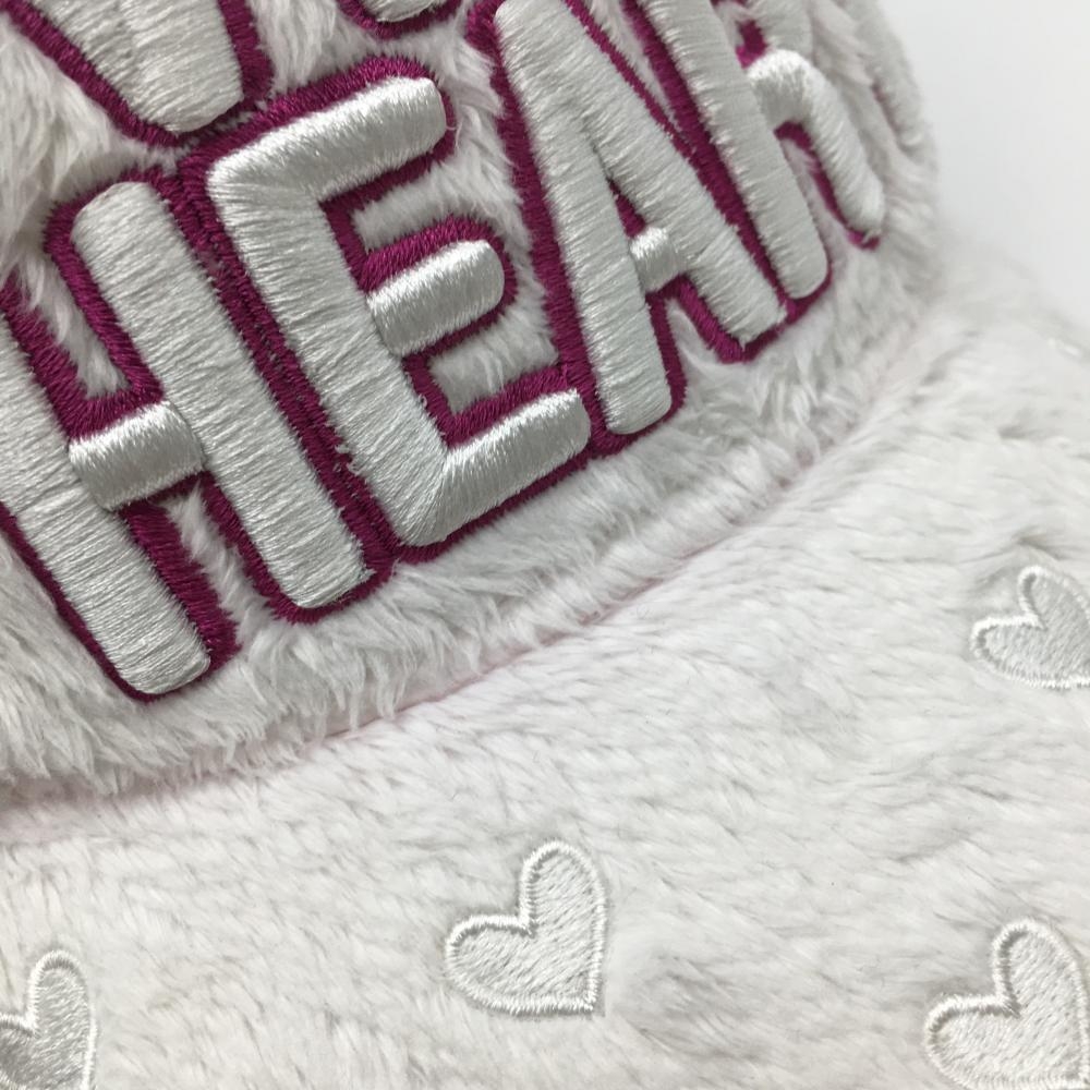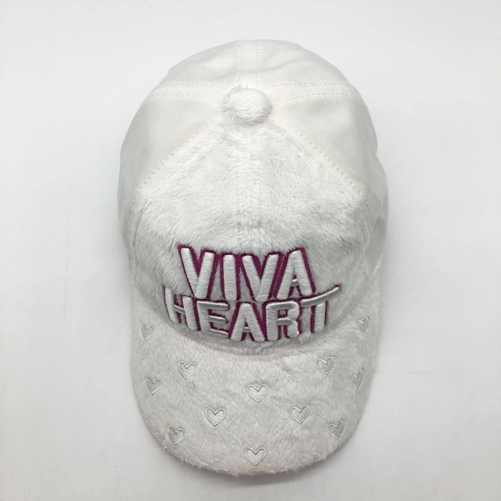 【美品】ビバハート キャップ 白×ピンク 一部ボア つばハート レディース 40 ゴルフウェア VIVA HEART