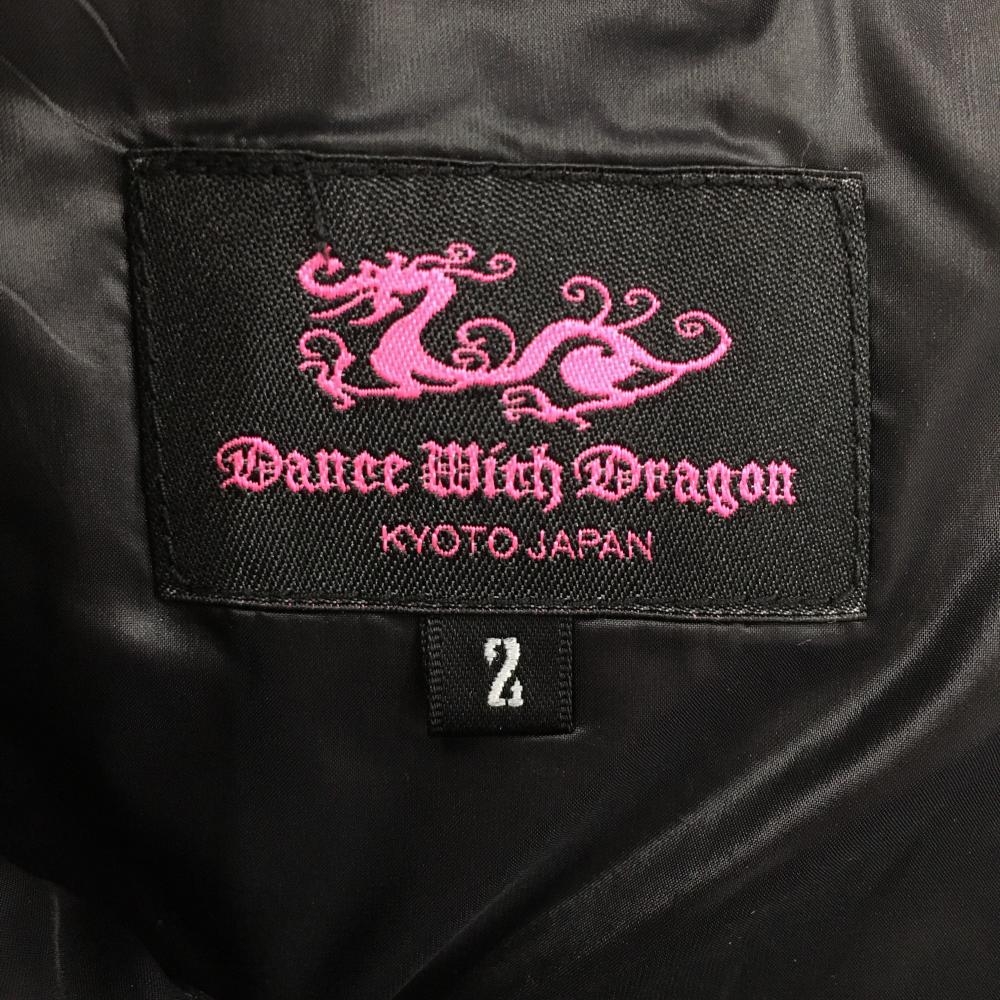 【美品】ダンスウィズドラゴン 中綿ショートパンツ 黒×ブルー ストライプ ボア レディース 2(M) ゴルフウェア Dance With Dragon