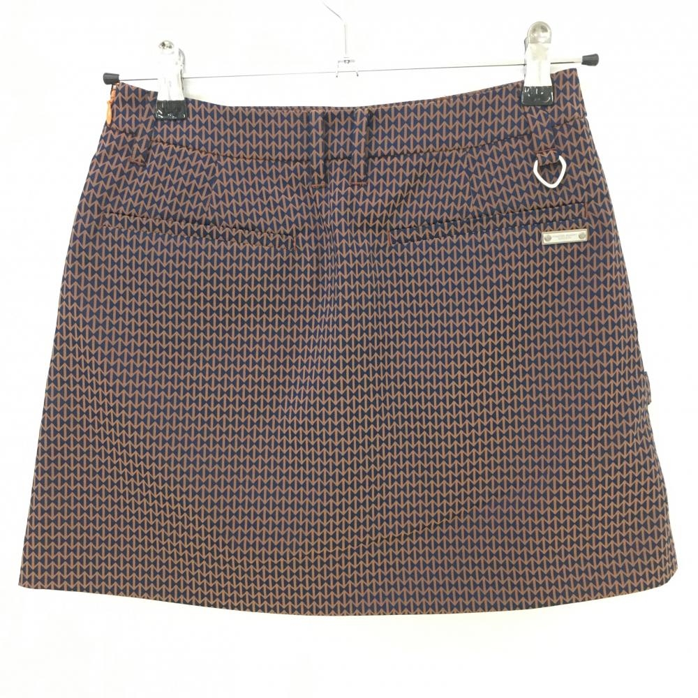 【超美品】マスターバニー スカート ブラウン×ネイビー 総柄 内側インナーパンツ レディース 00(XS) ゴルフウェア MASTER BUNNY EDITION
