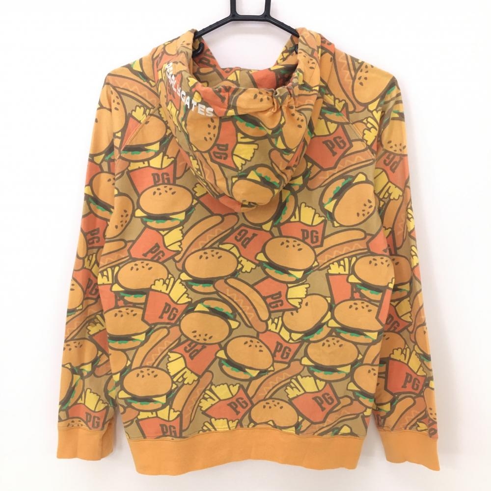 【美品】パーリーゲイツ ジップパーカー オレンジ×レッド ハンバーガー柄 ポテト柄 レディース 1(M) ゴルフウェア PEARLY GATES