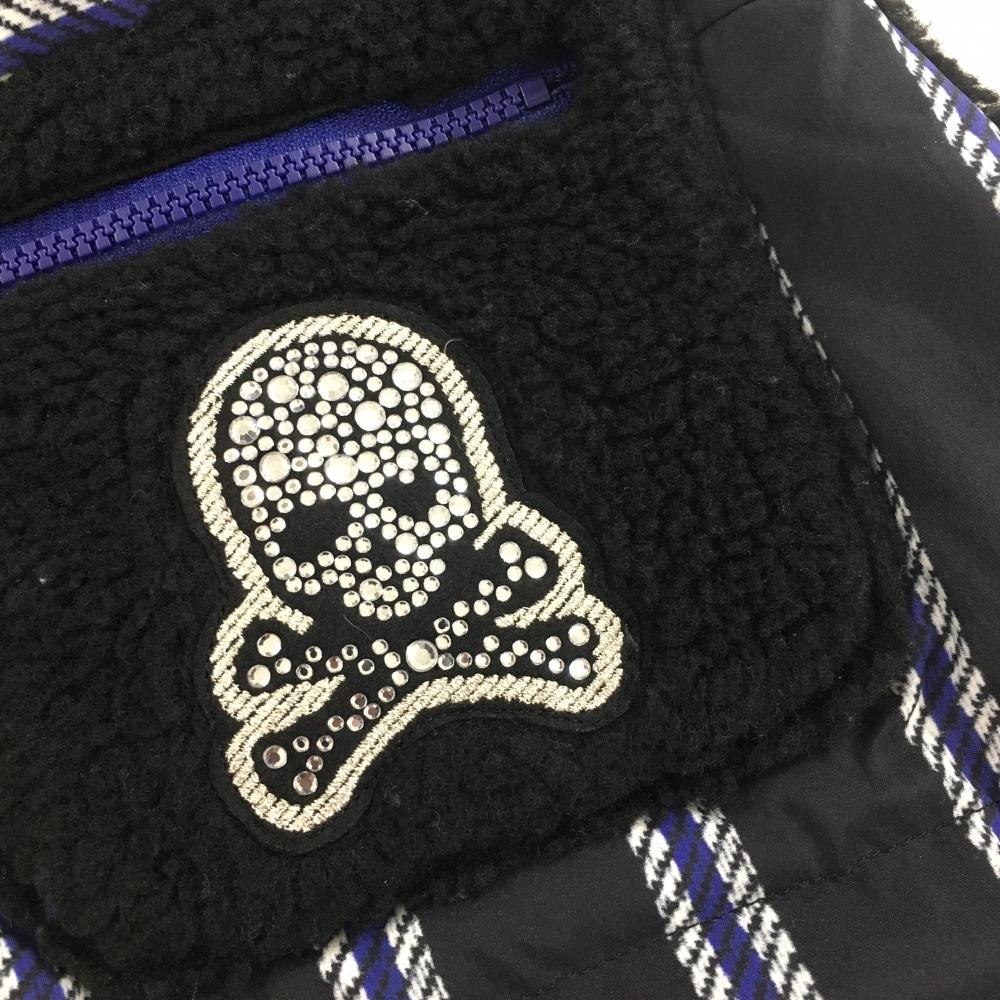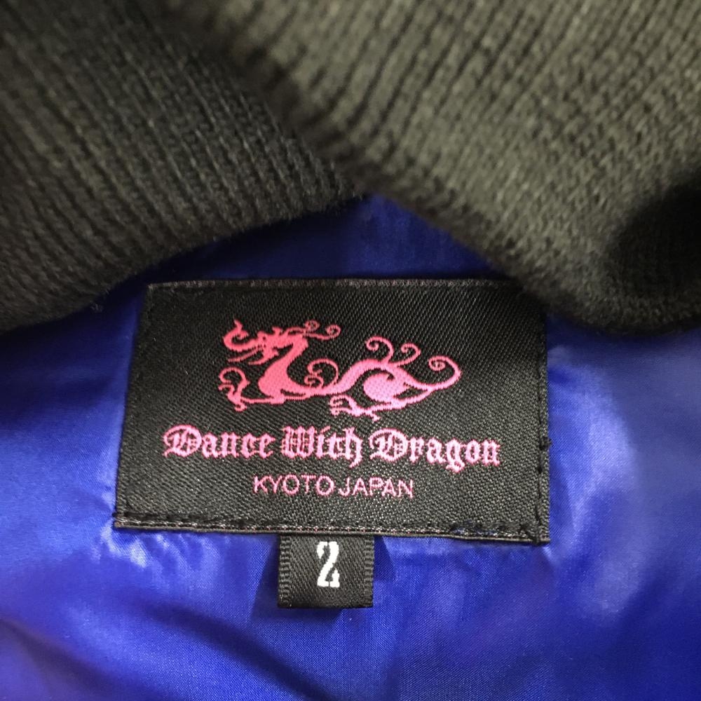 【超美品】ダンスウィズドラゴン ダウンベスト 黒×ブルー ストライプ レディース 2(M) ゴルフウェア Dance With Dragon