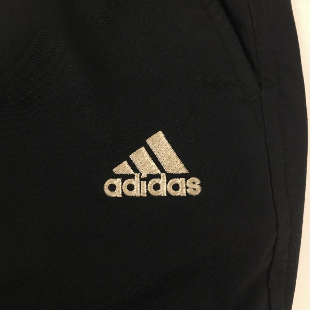 アディダス パンツ 黒 ロゴ刺しゅう 裾3ライン 裏起毛 裾ドローコード メンズ M ゴルフウェア adidas