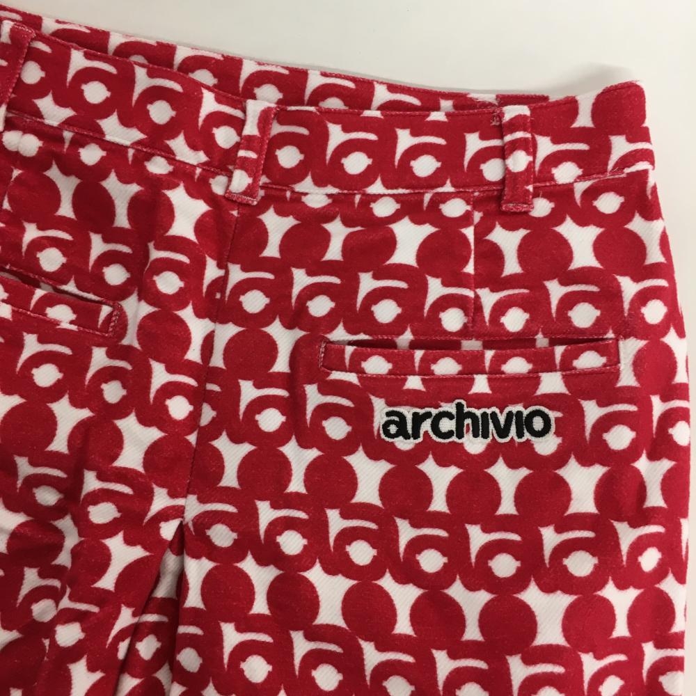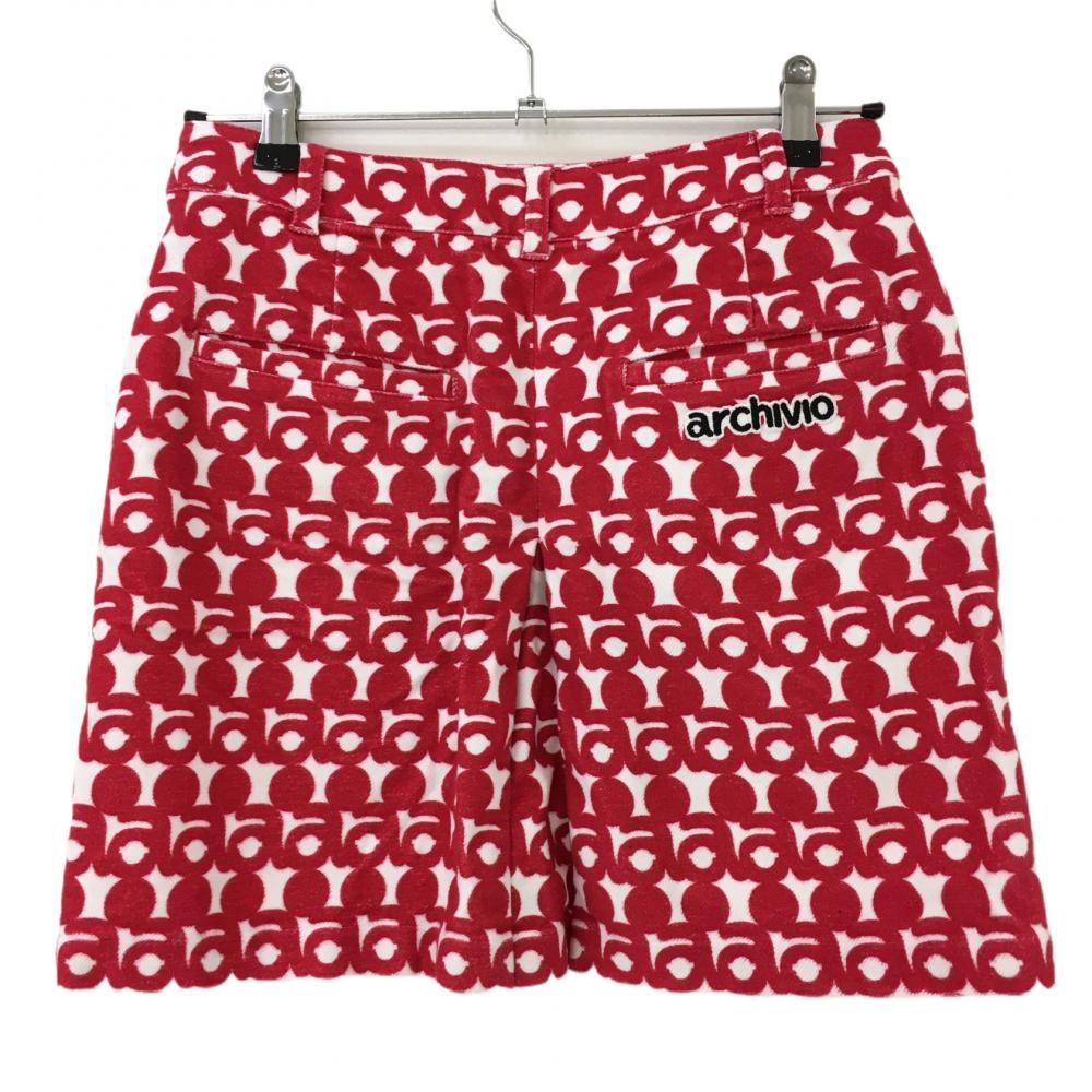 【美品】アルチビオ ストレッチスカート レッド×白 総柄 微起毛 レディース 38(M) ゴルフウェア archivio