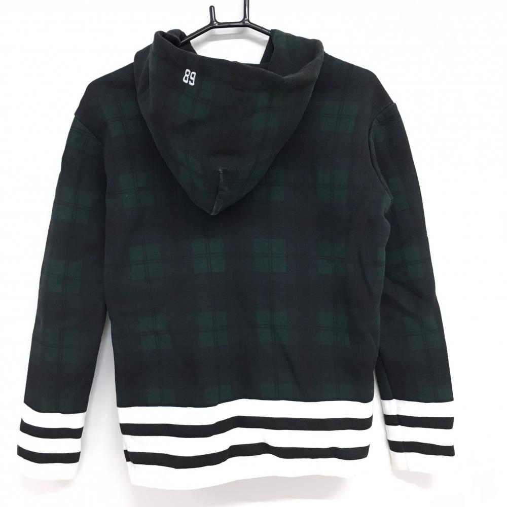 パーリーゲイツ ジップパーカー ダークグリーン×黒 チェック 一部ボーダー ジャケット レディース 1(M) ゴルフウェア PEARLY GATES