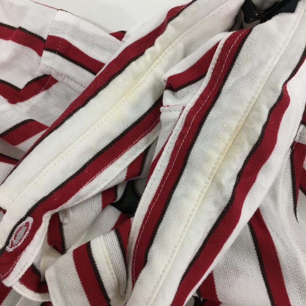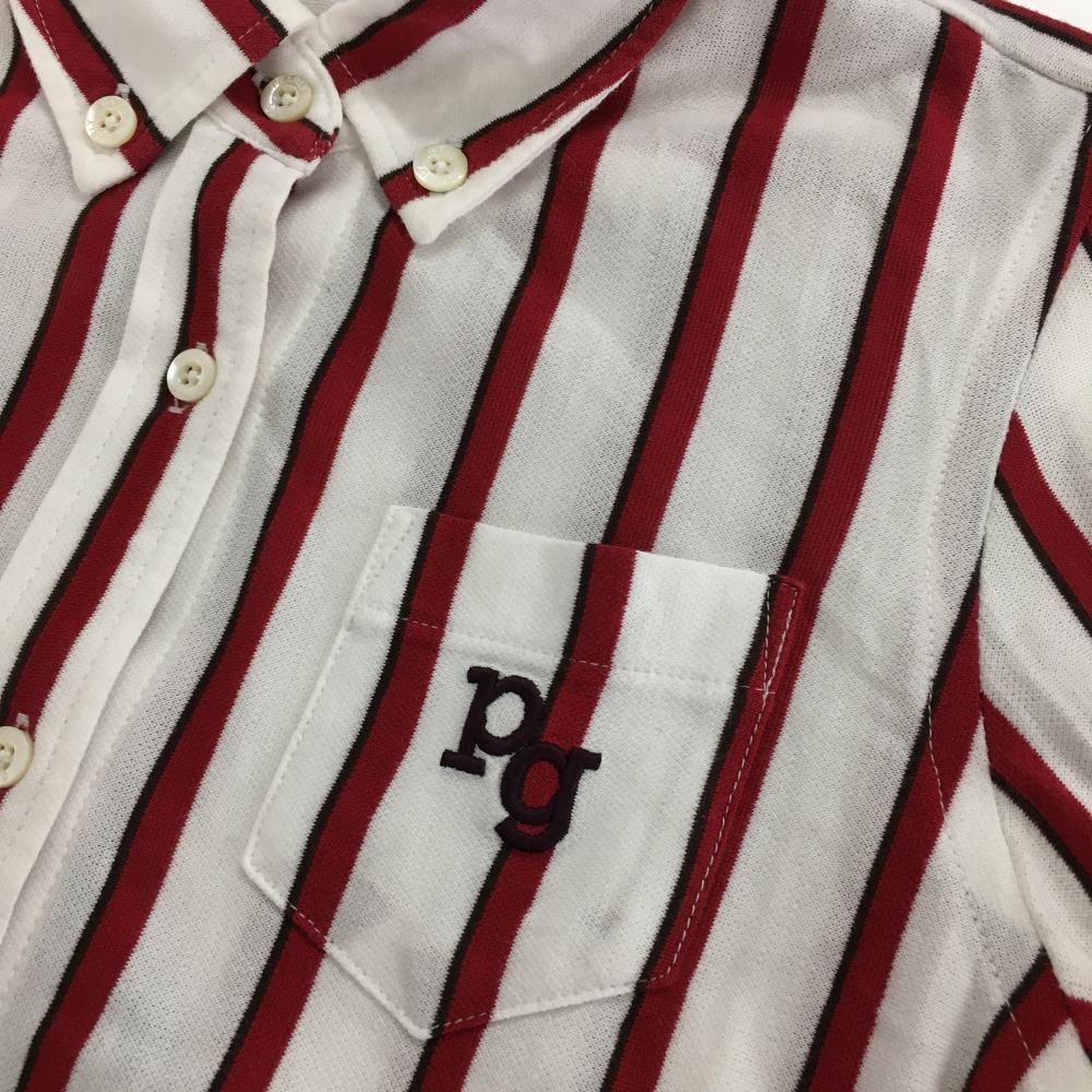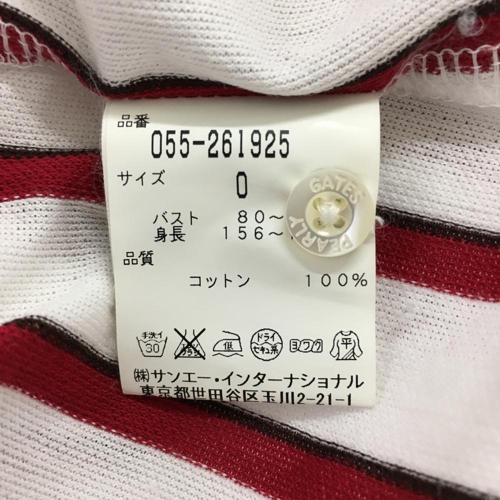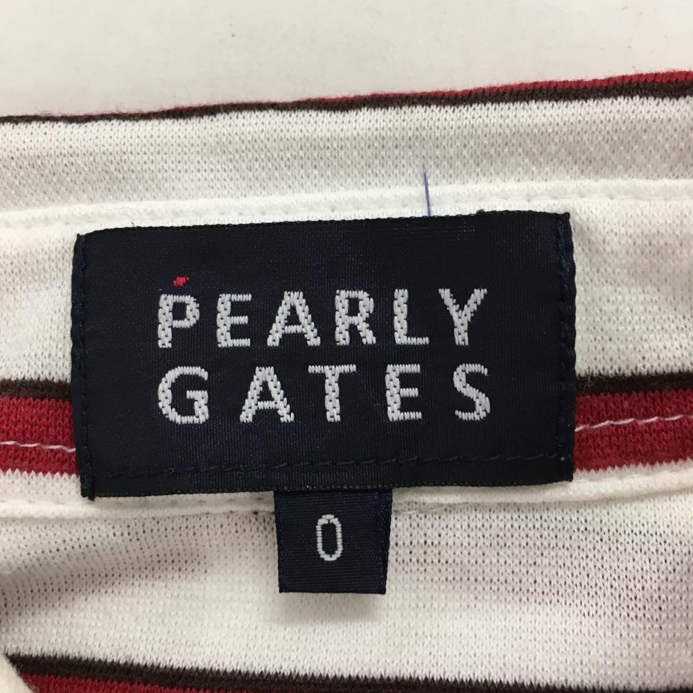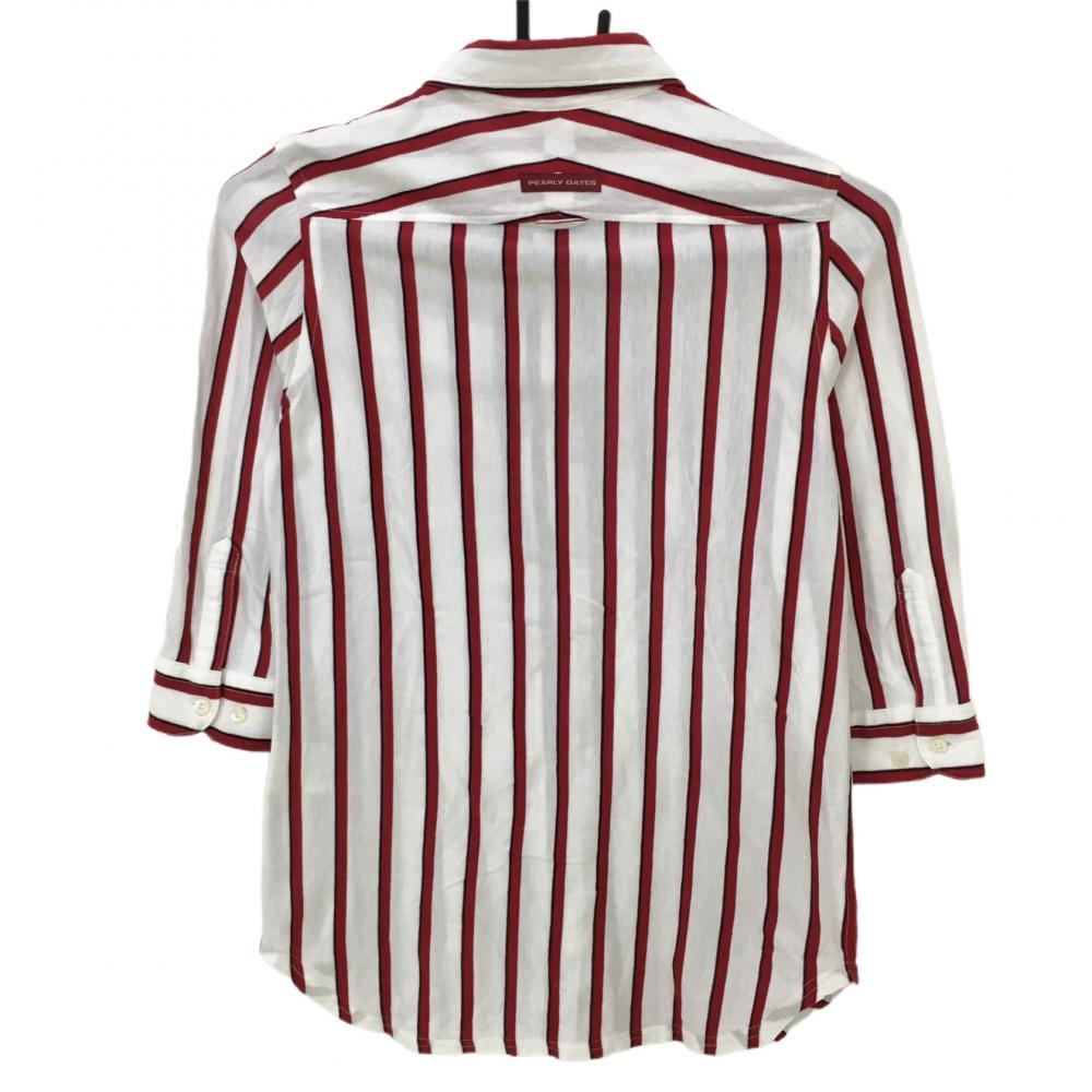 パーリーゲイツ 七分袖シャツ レッド×白 ストライプ ボタンダウン レディース 0(S) ゴルフウェア PEARLY GATES