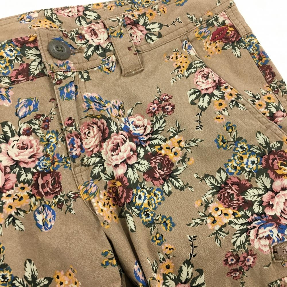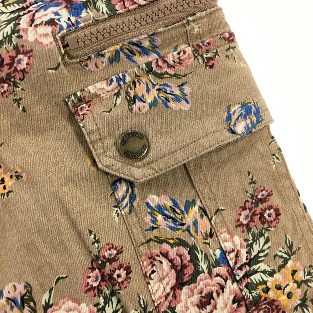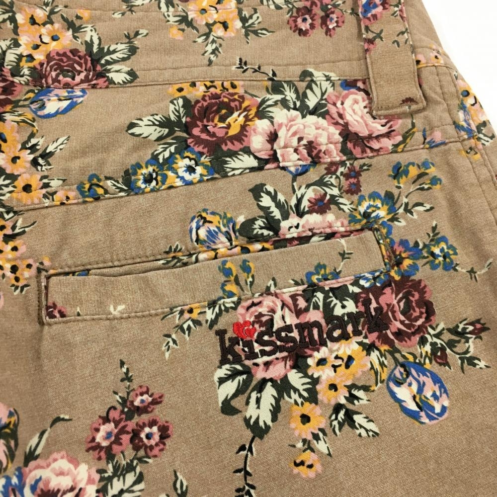 【美品】キスマーク パンツ ライトブラウン×ピンク 花柄 レディース 7(S) ゴルフウェア kissmark