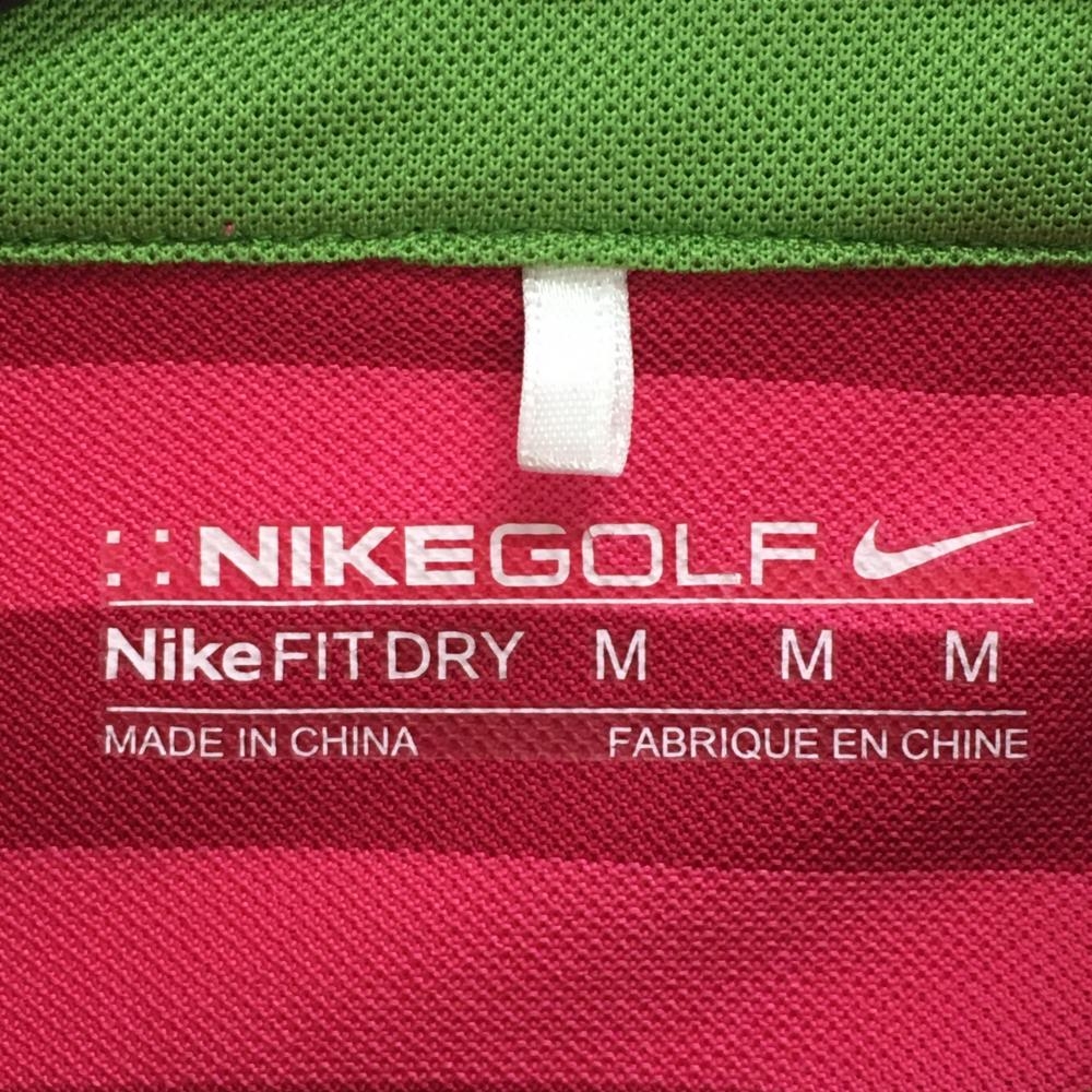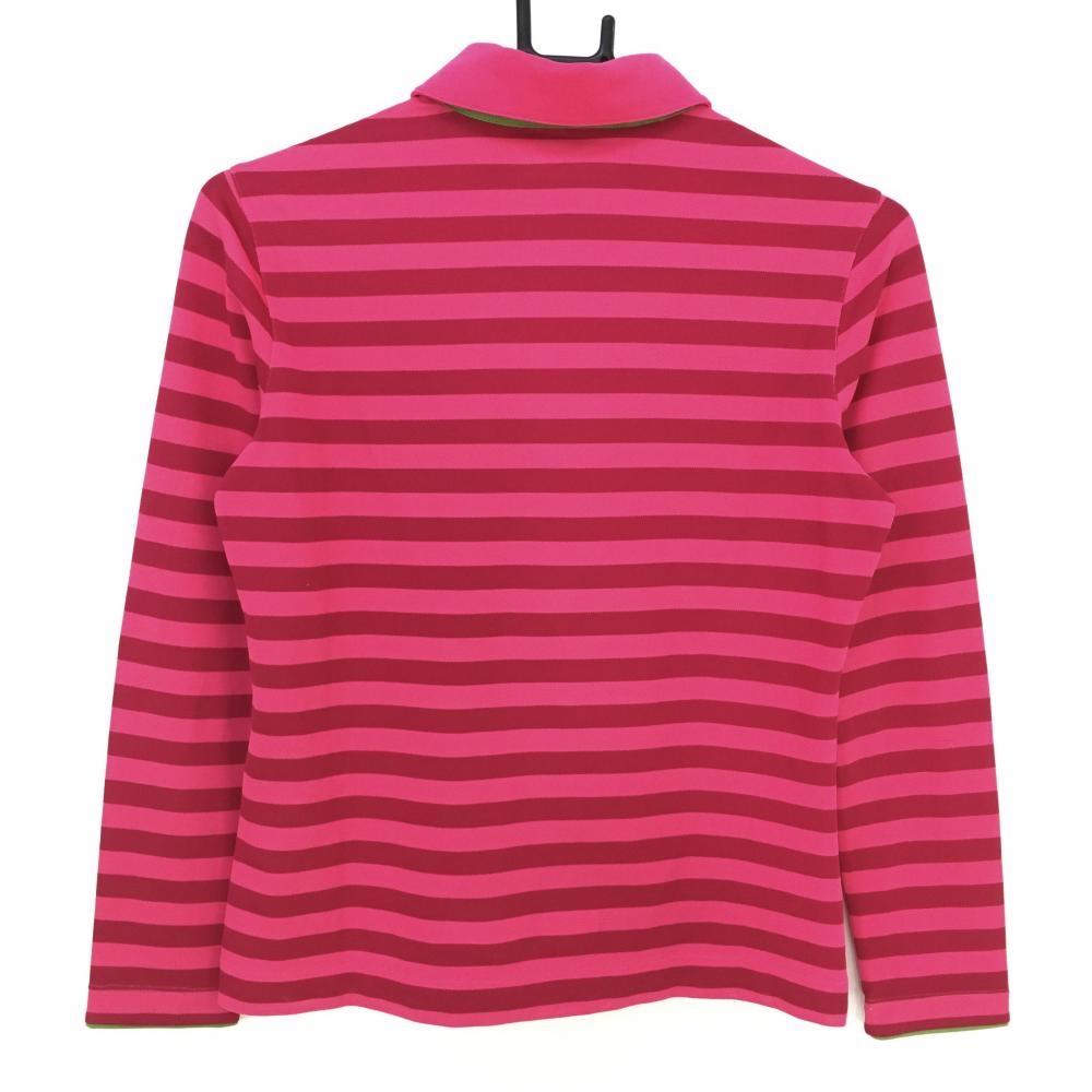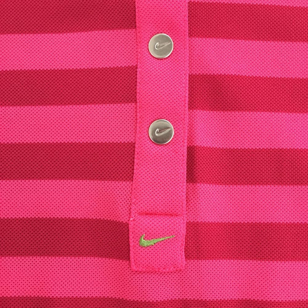 【美品】ナイキ 長袖ポロシャツ ピンク×レッド ボーダー スナップボタン レディース M ゴルフウェア NIKE