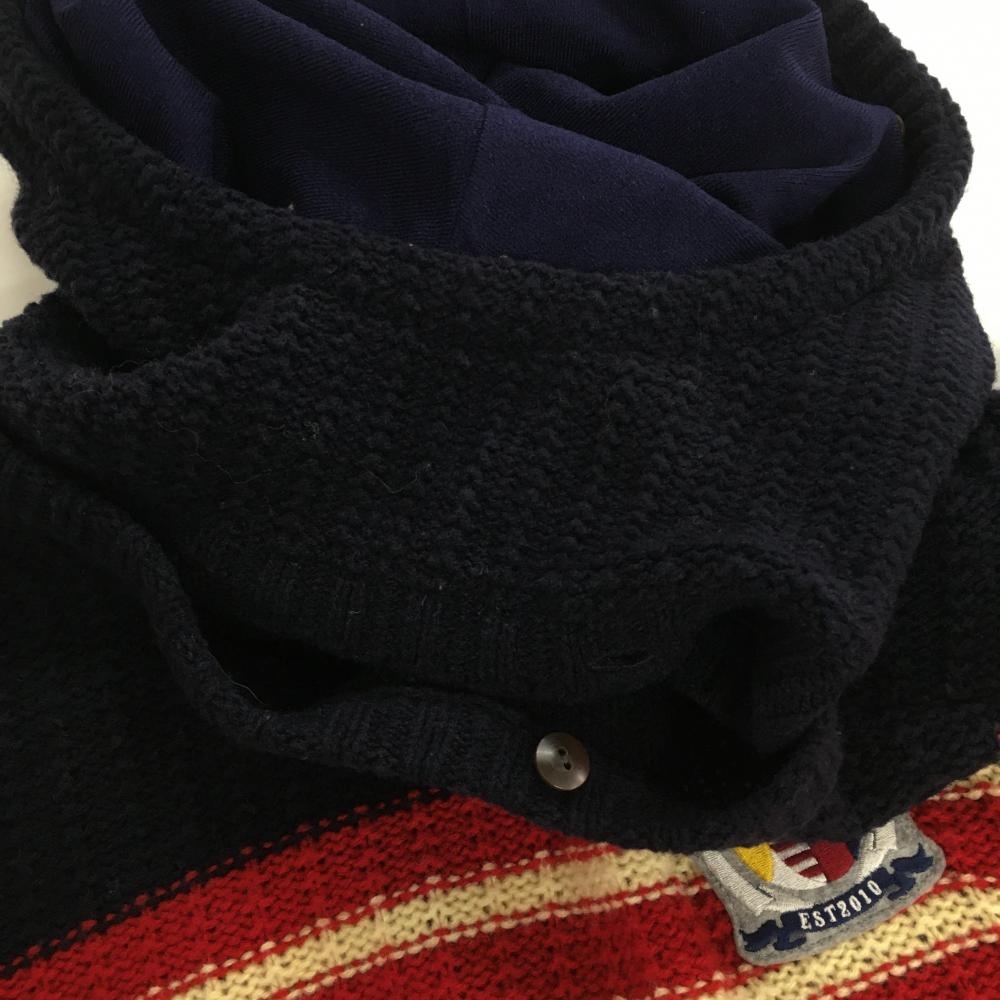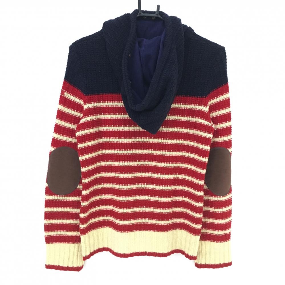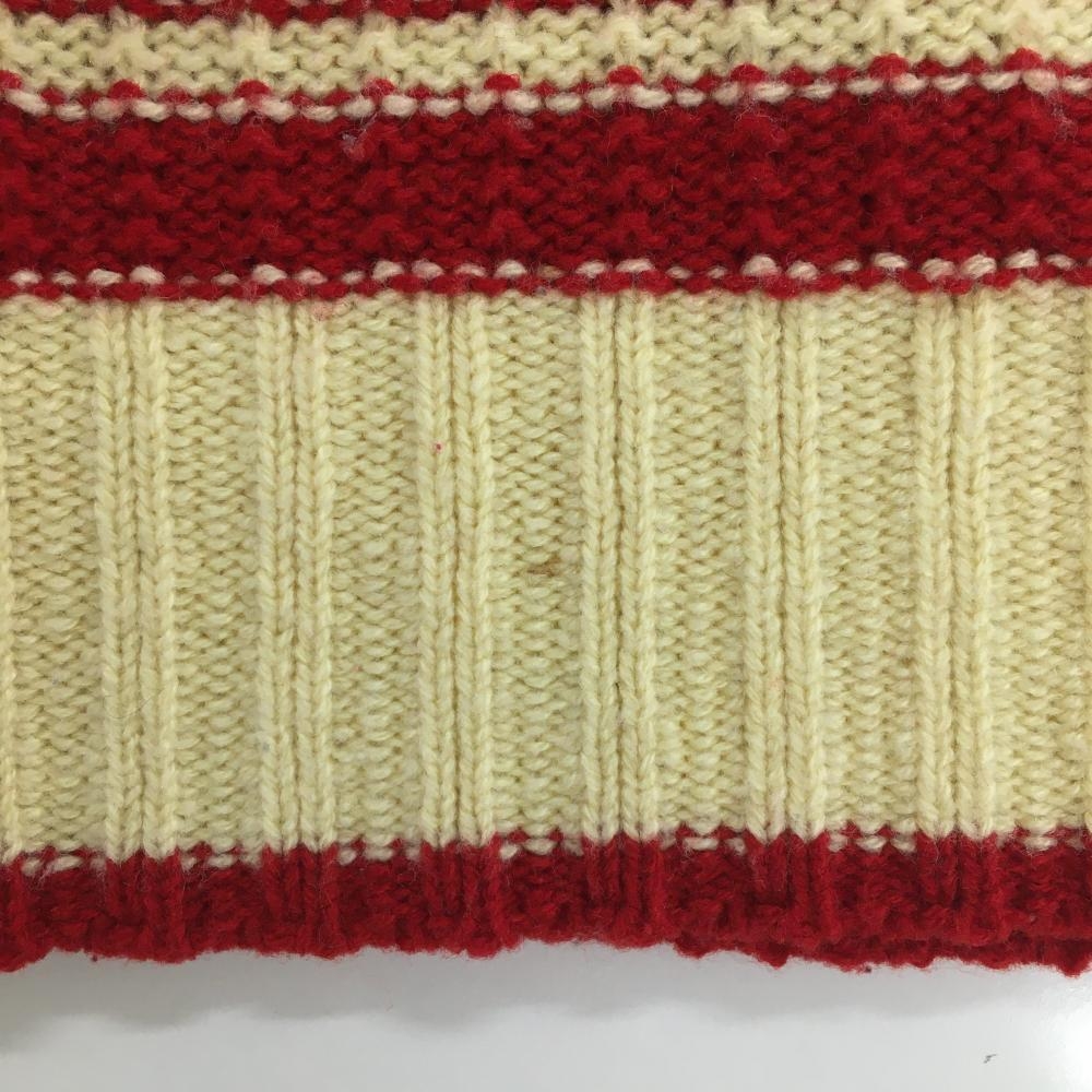 【美品】マスターバニー 2WAYセーター レッド×アイボリー ボーダー ウール混 レディース 1(M) ゴルフウェア MASTER BUNNY EDITION