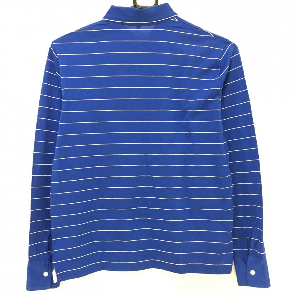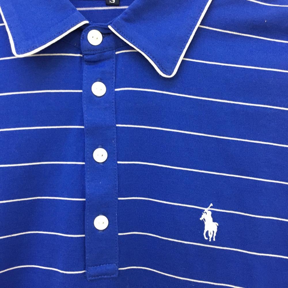 【超美品】ラルフローレン 長袖ポロシャツ ブルー×白 ボーダー ロゴ刺しゅう コットン100% レディース S ゴルフウェア Ralph Lauren