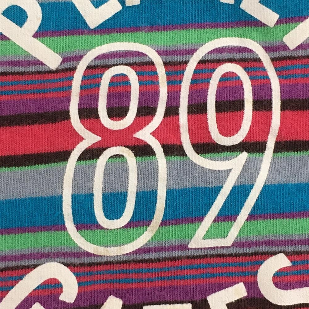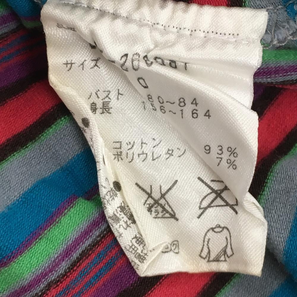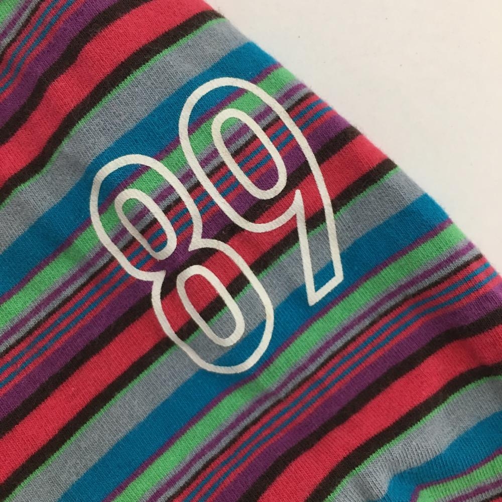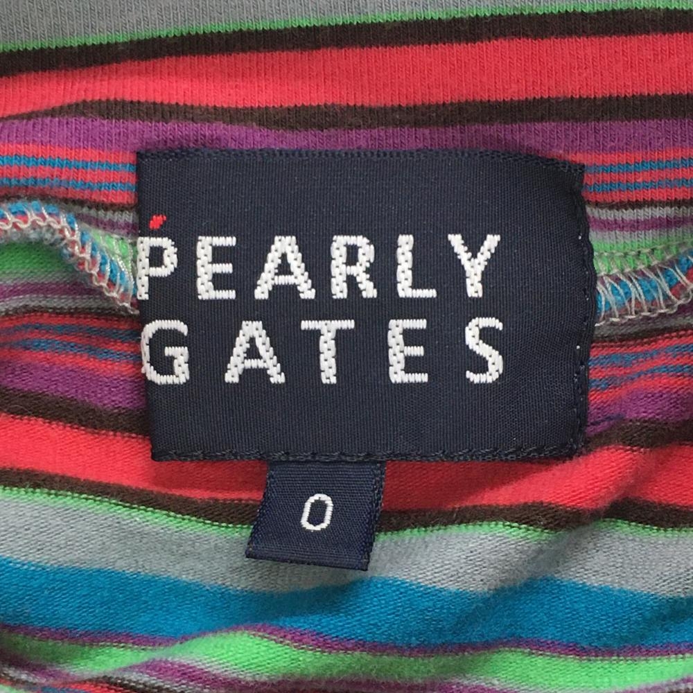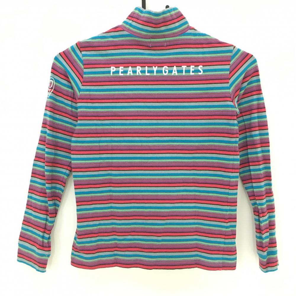 【美品】パーリーゲイツ 長袖ハイネックシャツ マルチカラー ボーダー ロゴプリント レディース 0(S) ゴルフウェア PEARLY GATES