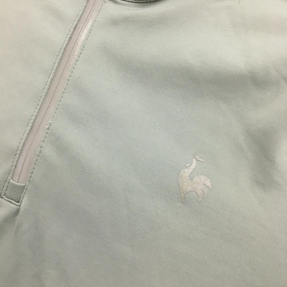 【超美品】ルコック 長袖ハイネックシャツ ライトカーキ×シルバー ハーフジップ ストレッチ レディース M ゴルフウェア le coq sportif