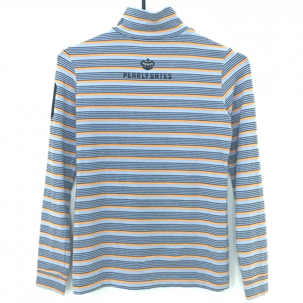 パーリーゲイツ 長袖ハイネックシャツ グレー×黒×オレンジ ボーダー レディース 0(S) ゴルフウェア PEARLY GATES