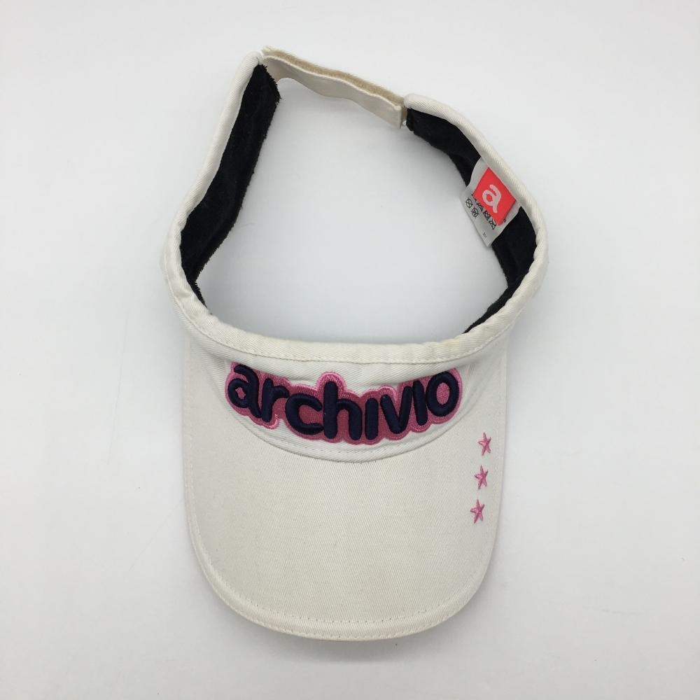 アルチビオ サンバイザー 白×ピンク 立体ロゴ刺しゅう 内側パイル地 ゴルフウェア archivio