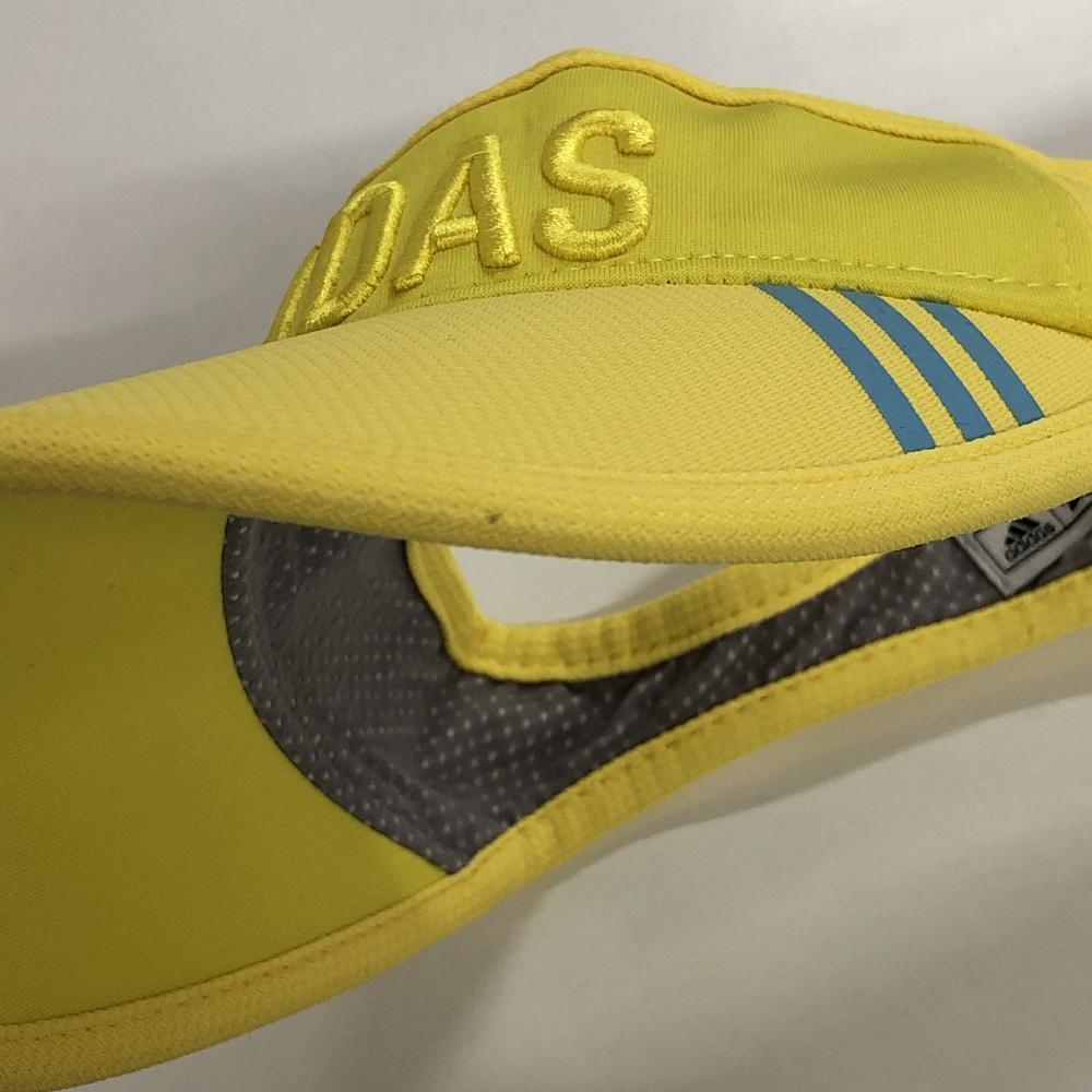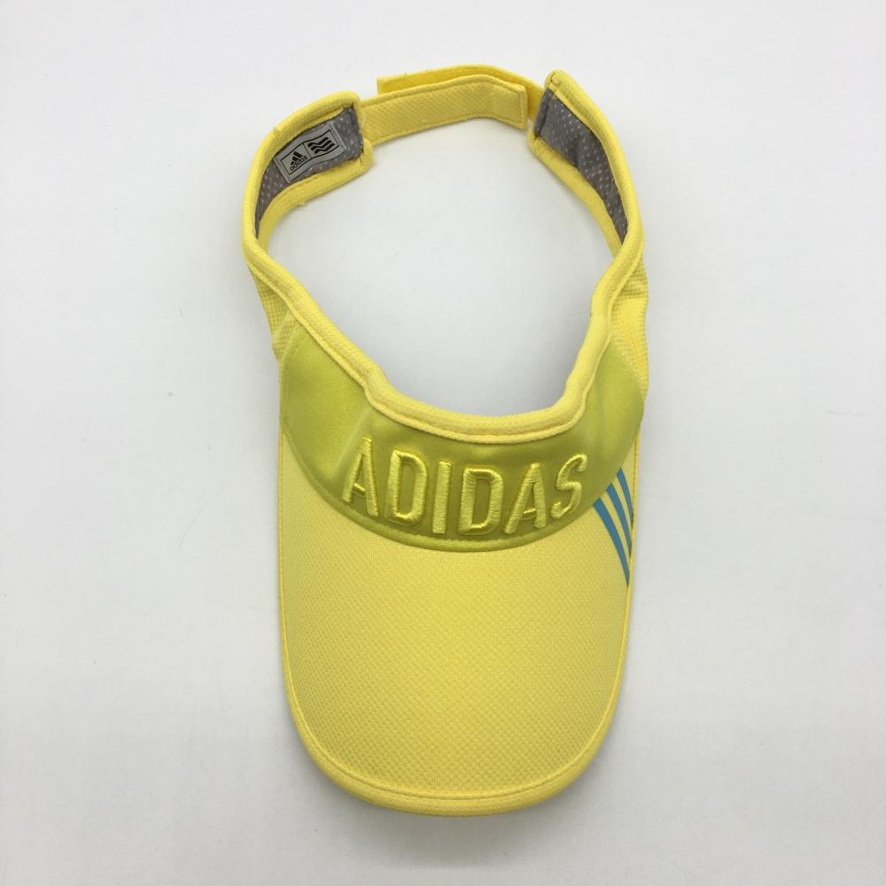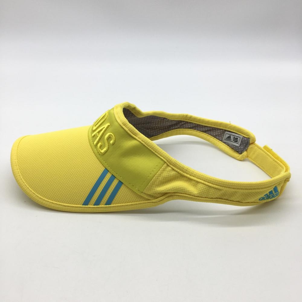 【超美品】アディダス サンバイザー イエロー×ライトブルー 3ライン フリー(56-58㎝) ゴルフウェア adidas