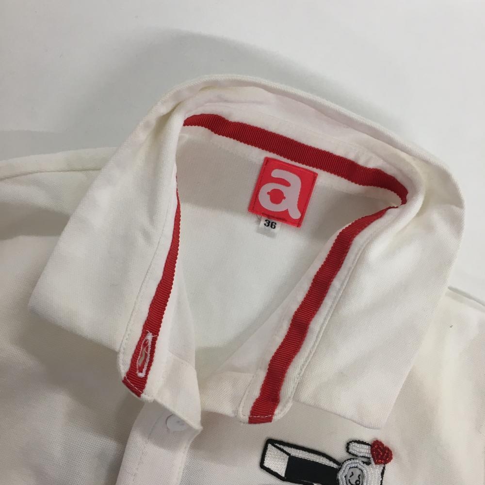 アルチビオ 半袖ポロシャツ 白×黒 ビーズ・ラインストーンロゴ レディース 36 ゴルフウェア archivio