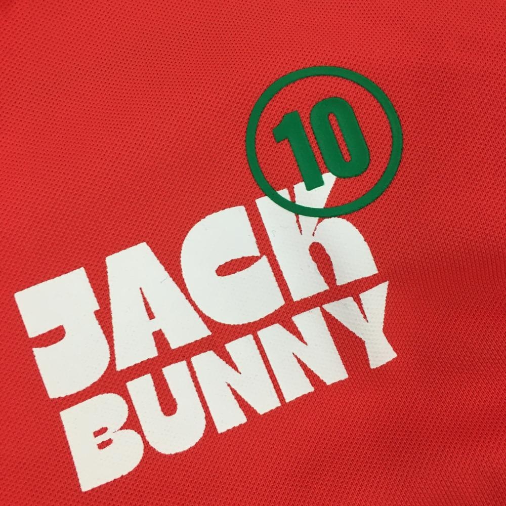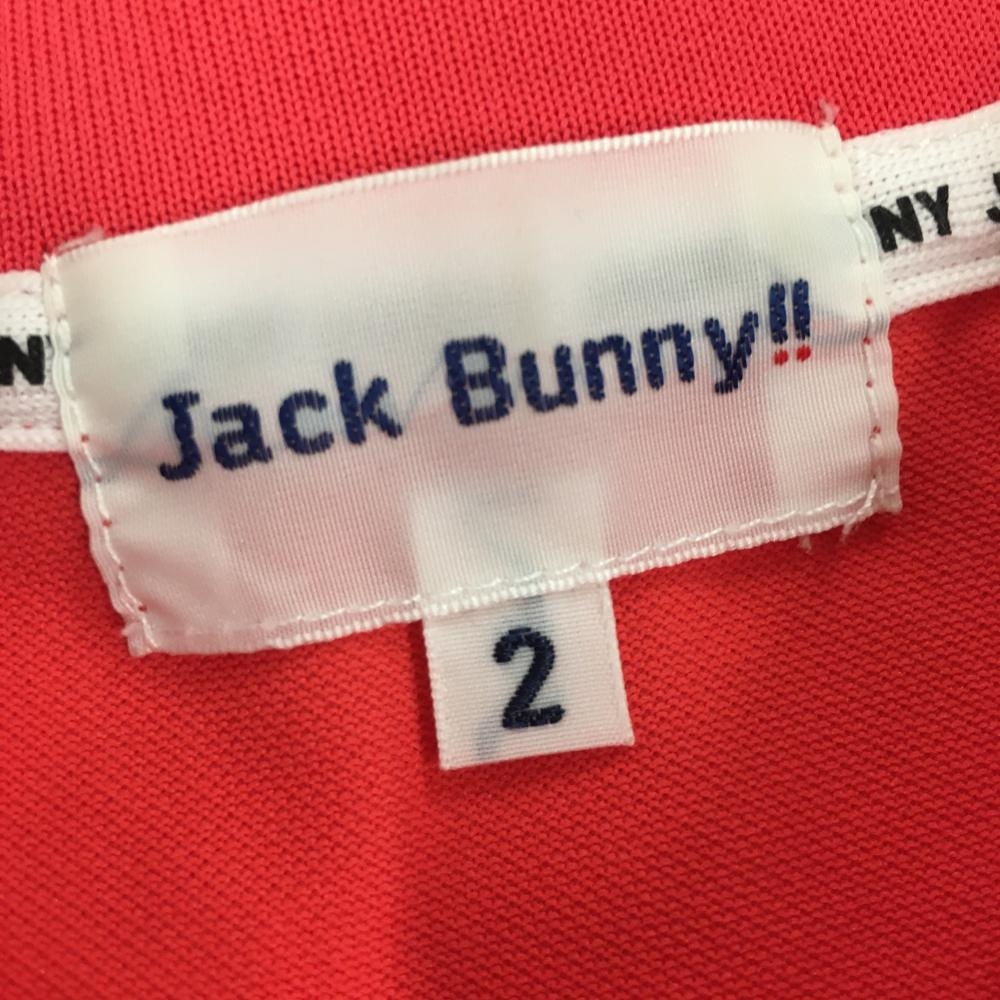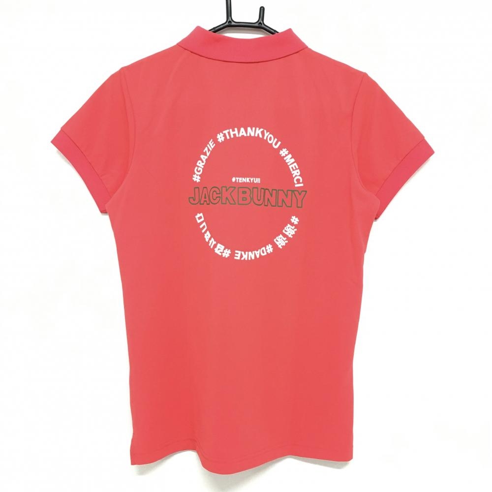 【超美品】ジャックバニー 半袖ポロシャツ レッドピンク×白 バックロゴプリント レディース 2(L) ゴルフウェア 2023年モデル Jack Bunny