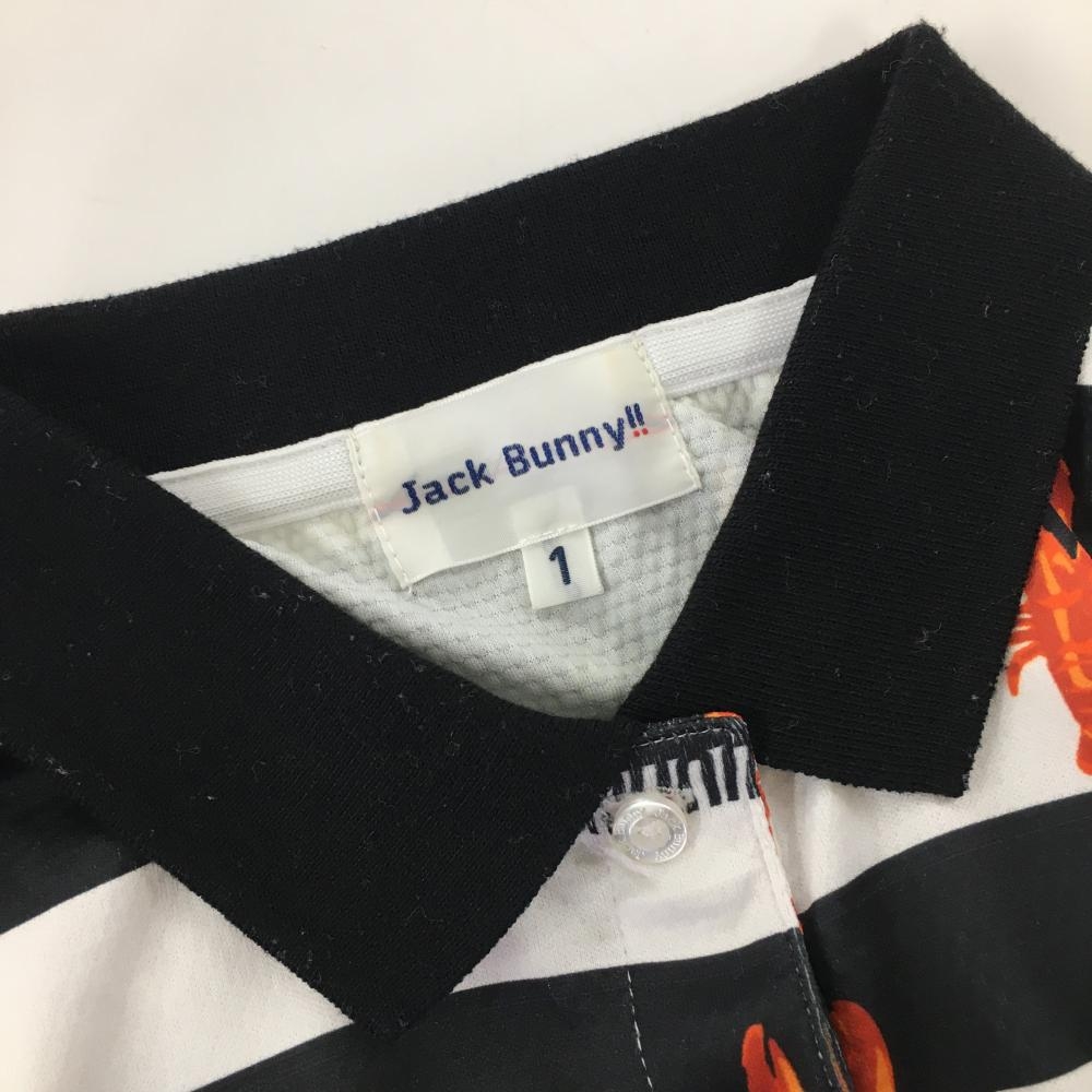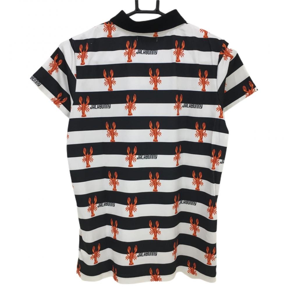 【美品】ジャックバニー 半袖ポロシャツ 白×黒 ボーダー ザリガニ柄 レディース 1 ゴルフウェア 2023年モデル Jack Bunny
