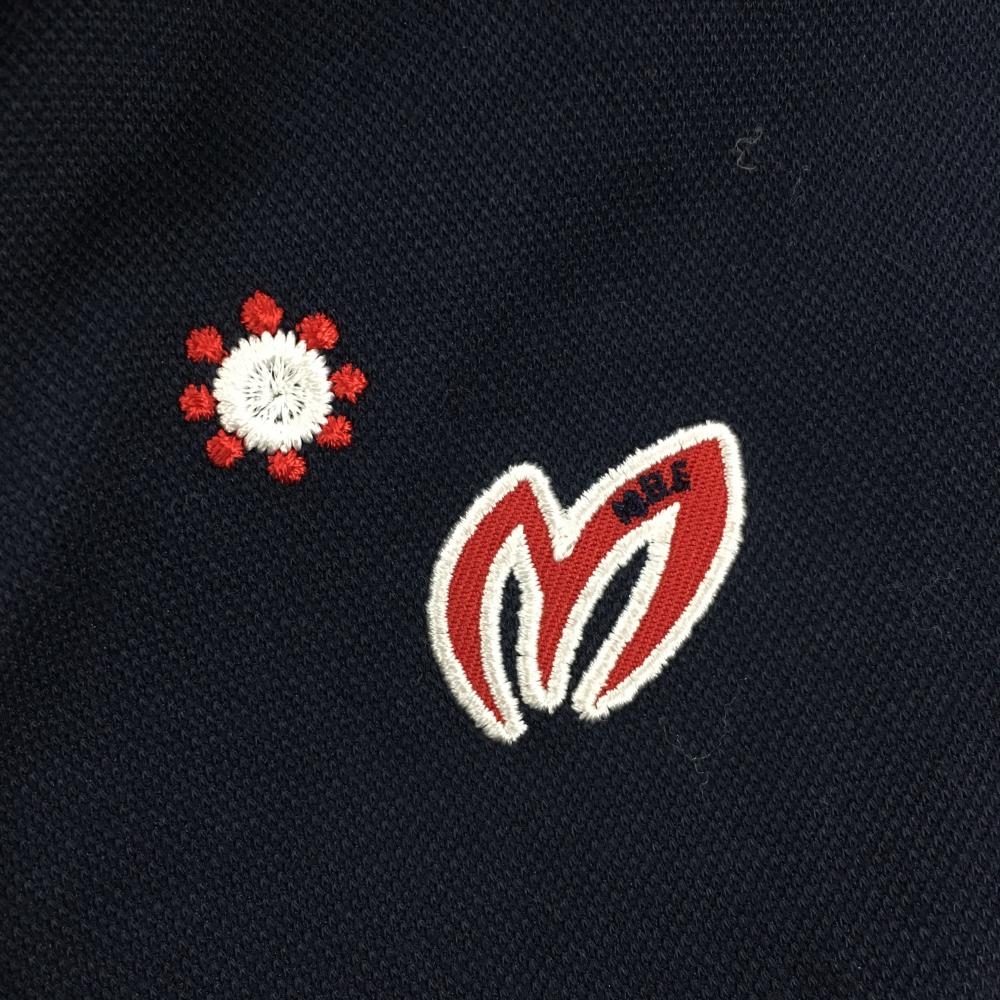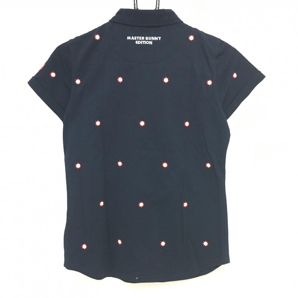 マスターバニー 半袖ポロシャツ ネイビー×白 刺しゅう総柄 レディース 0(S) ゴルフウェア MASTER BUNNY EDITION