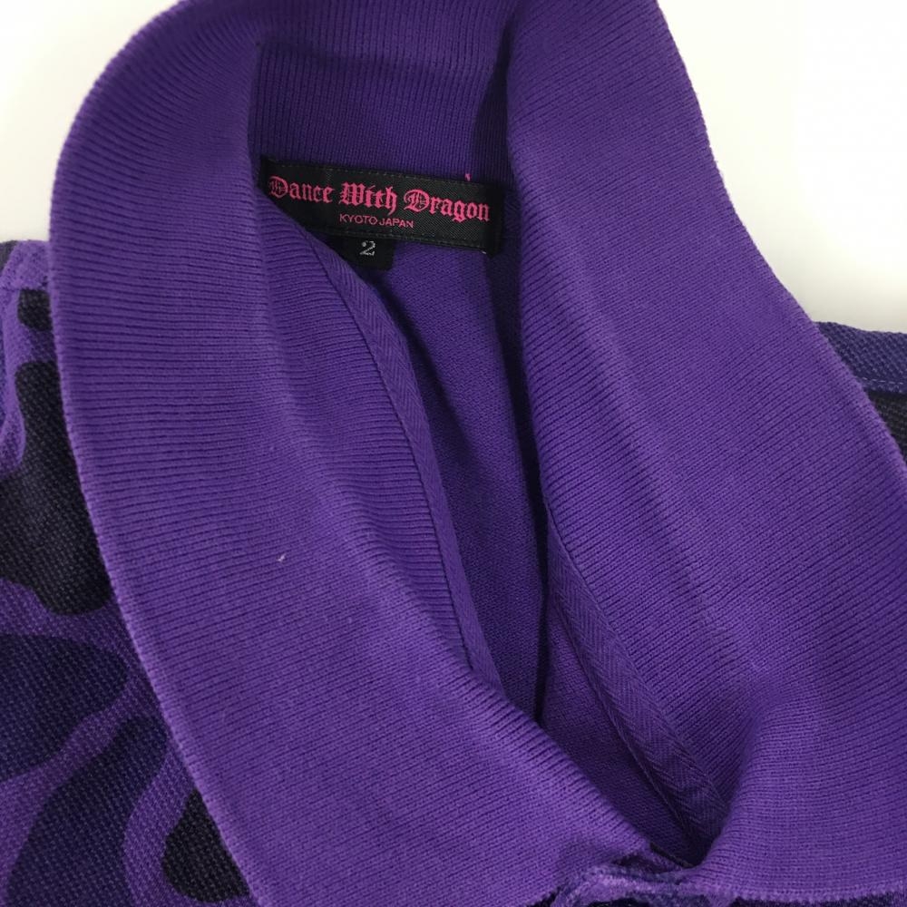 ダンスウィズドラゴン 半袖ポロシャツ パープル×黒 総柄 レディース 2(M) ゴルフウェア Dance With Dragon
