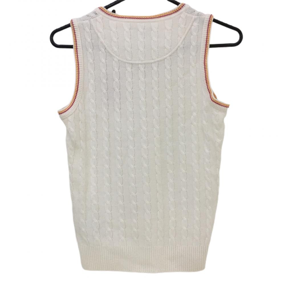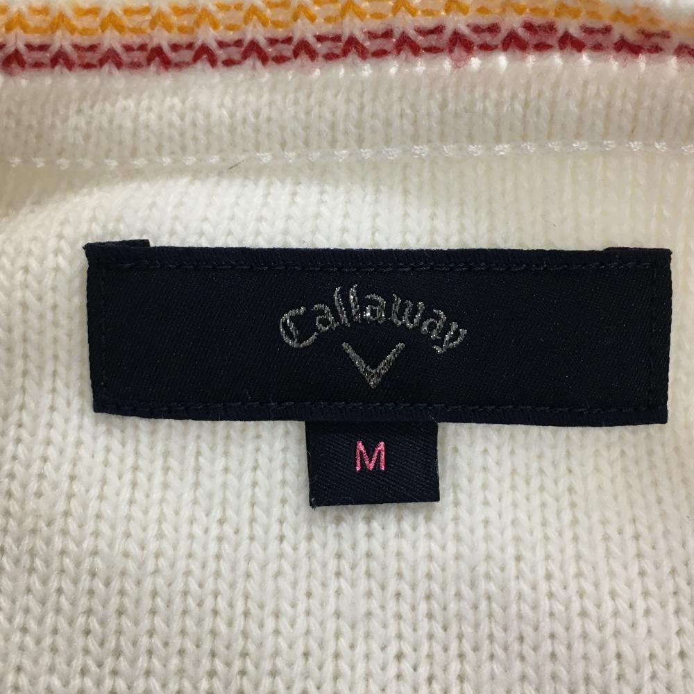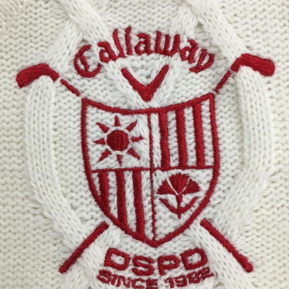 【美品】キャロウェイ ニットベスト 白×レッド Vネック ケーブル編み ウール混 レディース M ゴルフウェア Callaway