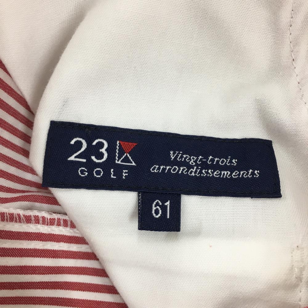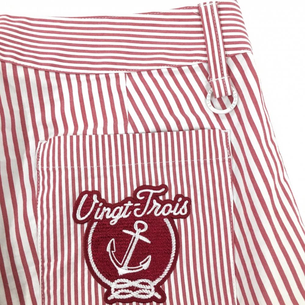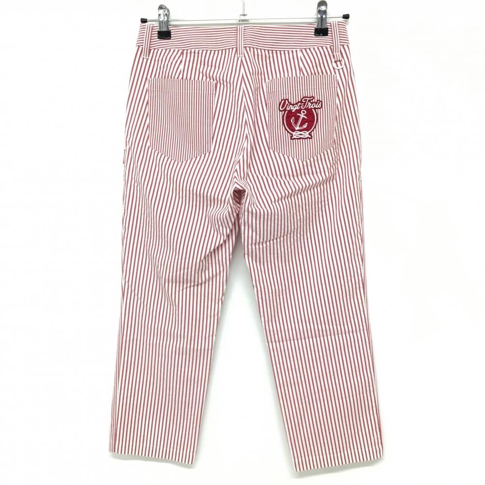 23区ゴルフ 七分丈パンツ レッド×白 ストライプ柄 後ろ刺しゅう レディース 61(S) ゴルフウェア 23区