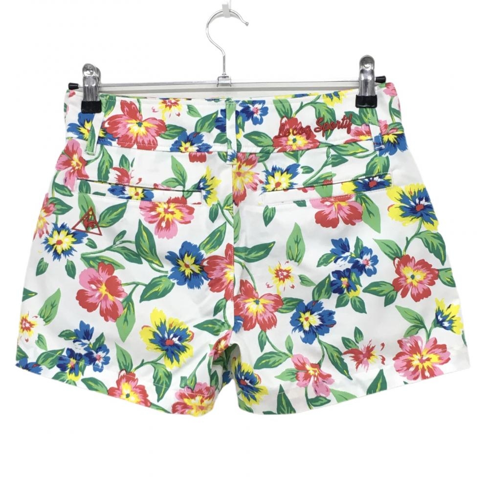【超美品】ルコック ショートパンツ 白×ピンク 花柄 ストレッチ レディース 9 ゴルフウェア le coq sportif