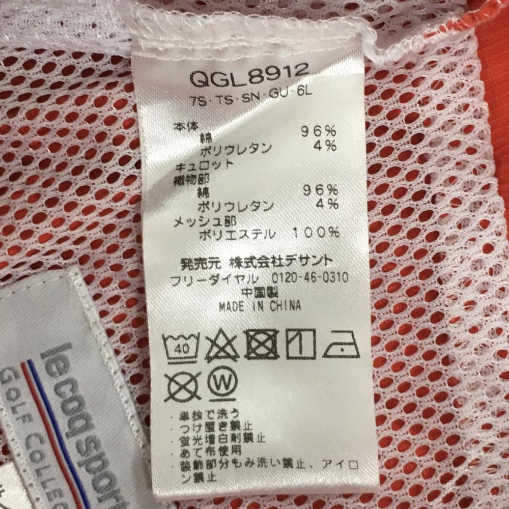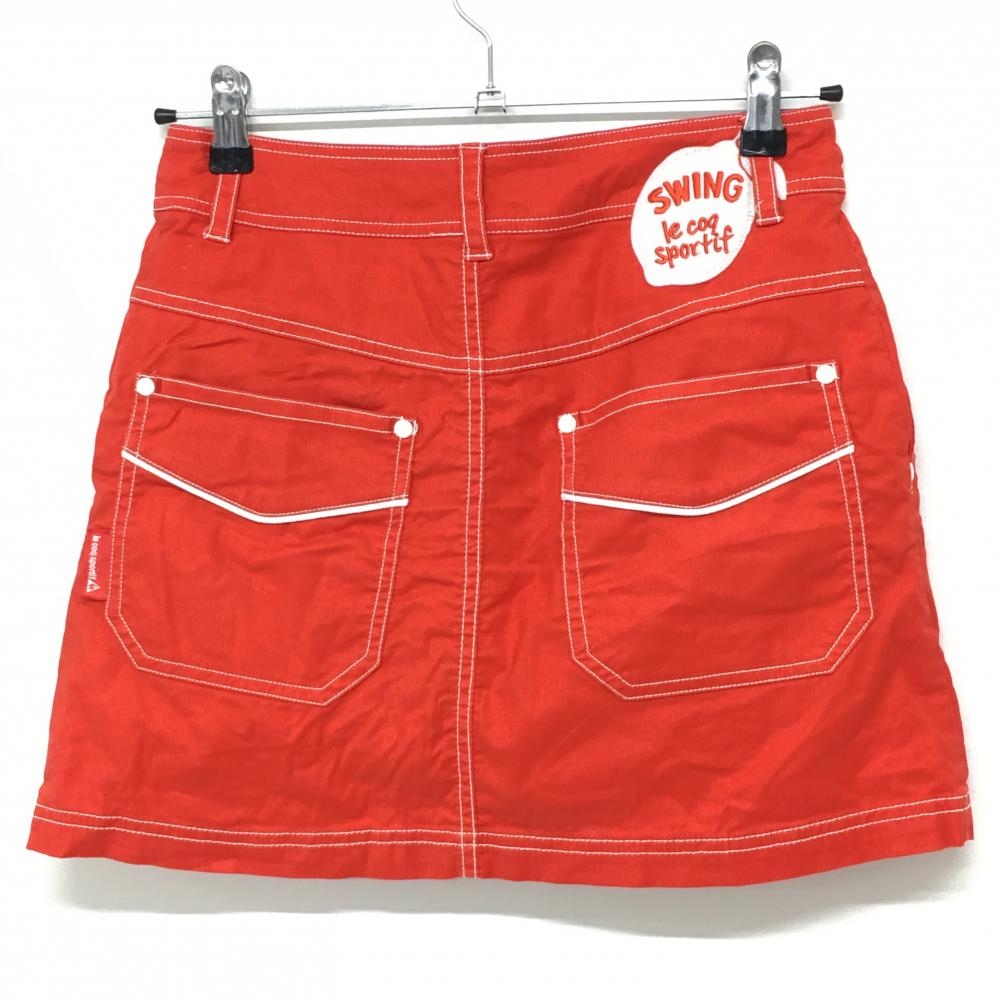 【美品】ルコック スカート オレンジレッド×白 ステッチ ストレッチ 内側インナーパンツ レディース 9 ゴルフウェア le coq sportif