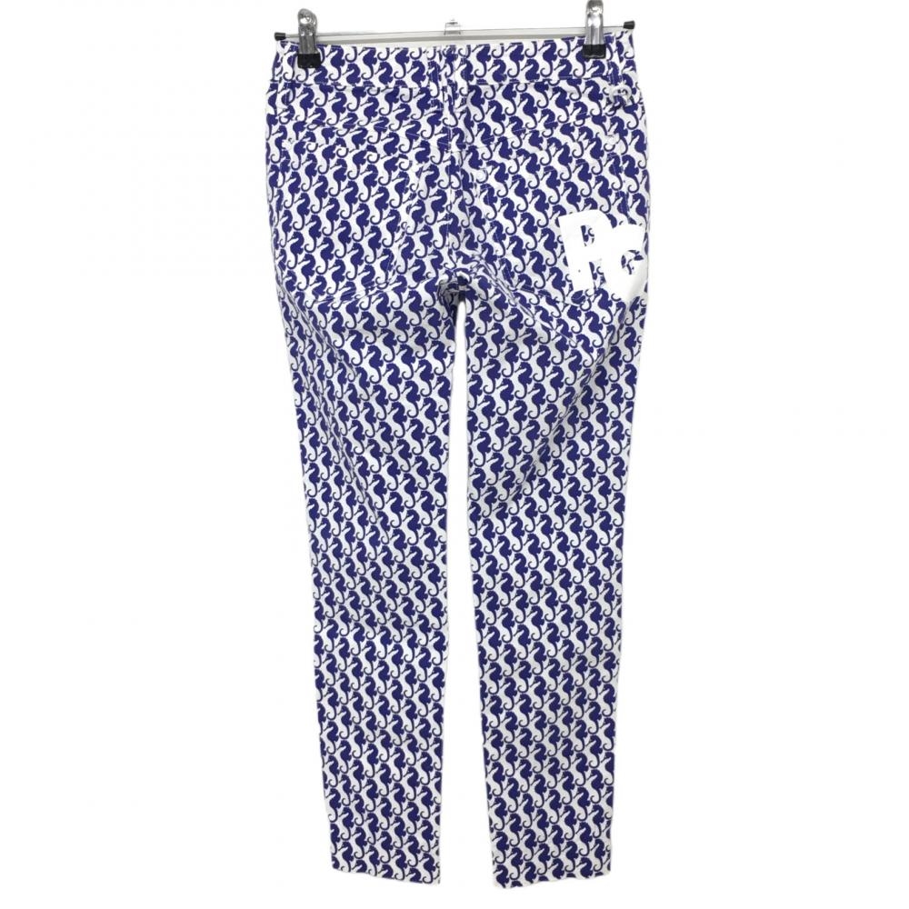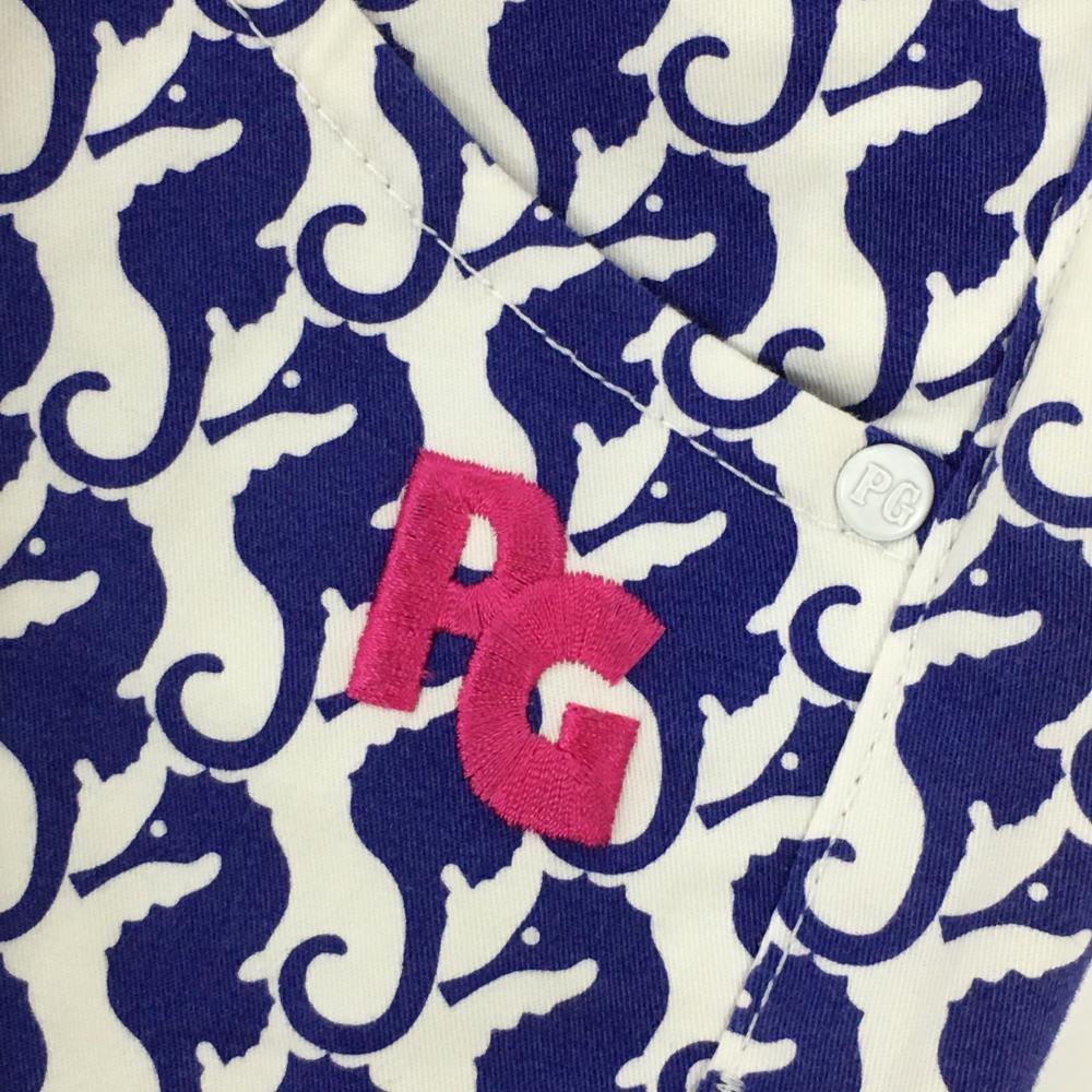 【美品】パーリーゲイツ パンツ 白×ブルー タツノオトシゴ総柄 ストレッチ レディース 0(S) ゴルフウェア PEARLY GATES