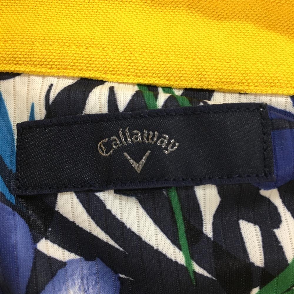 【超美品】キャロウェイ 半袖ポロシャツ イエロー 襟裏・袖口裏花柄 レディース ゴルフウェア Callaway