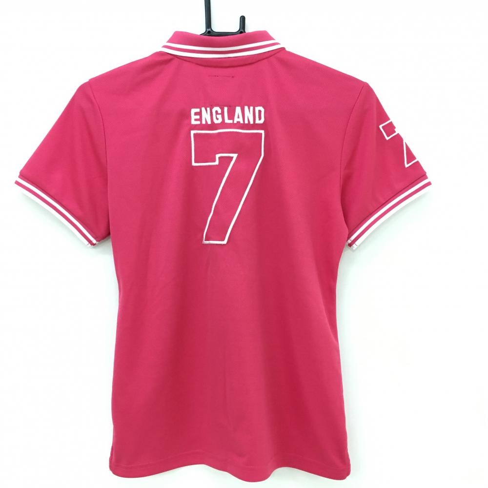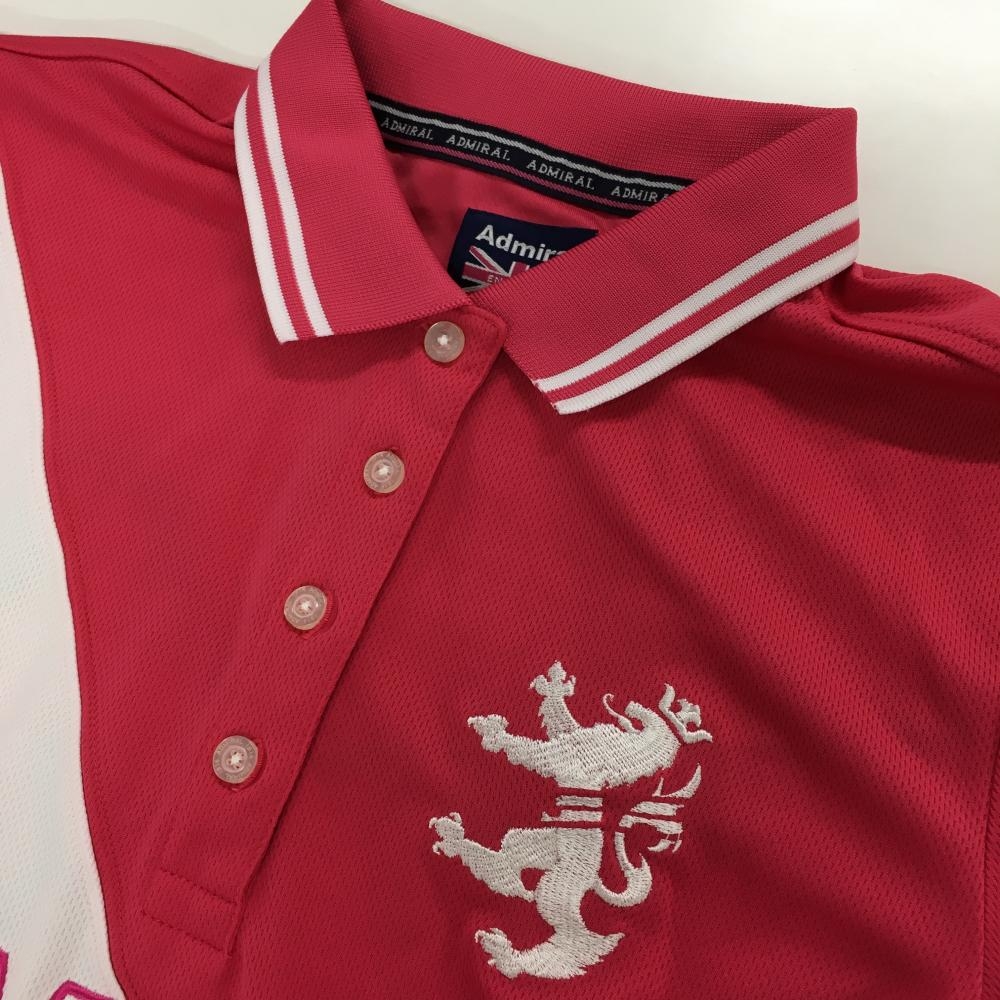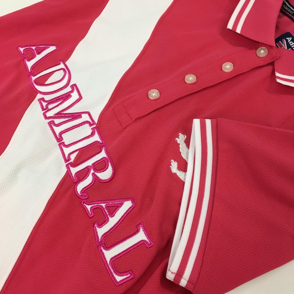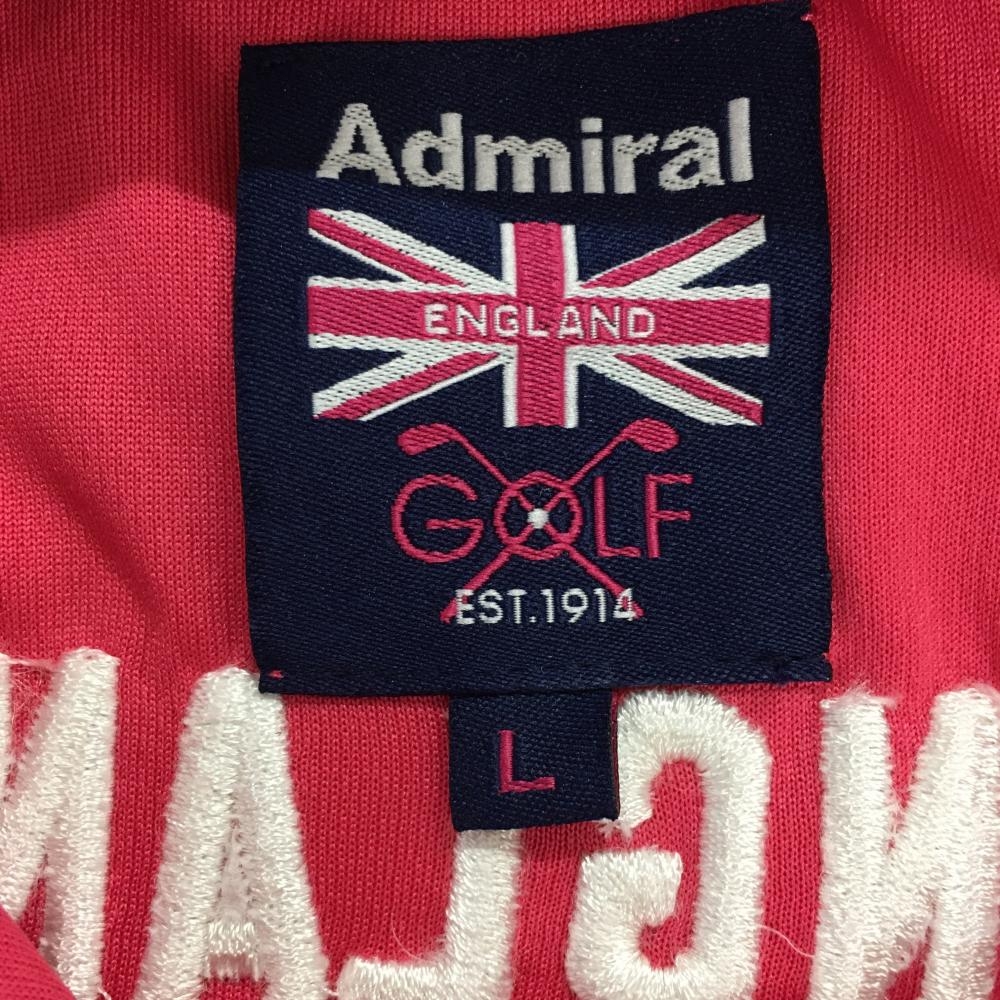 【超美品】アドミラル 半袖ポロシャツ ピンク×白 ビッグロゴ刺しゅう 襟・袖口ライン レディース L ゴルフウェア Admiral
