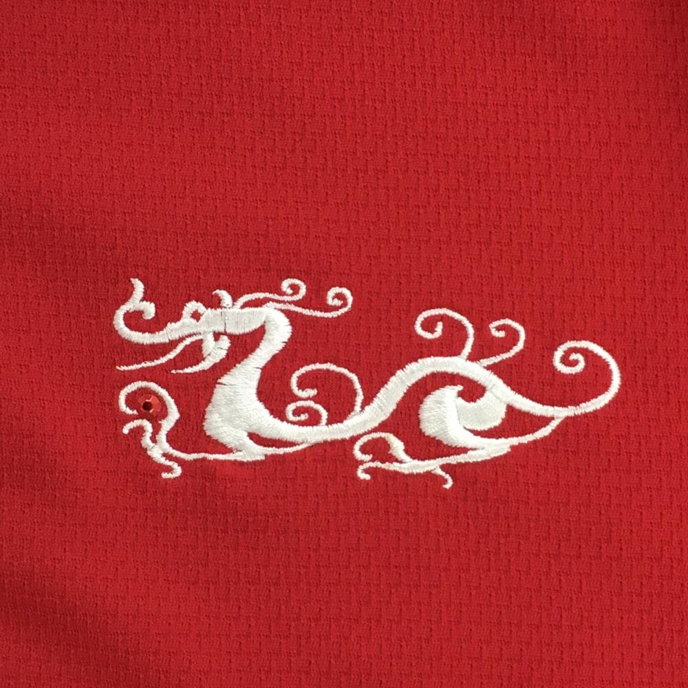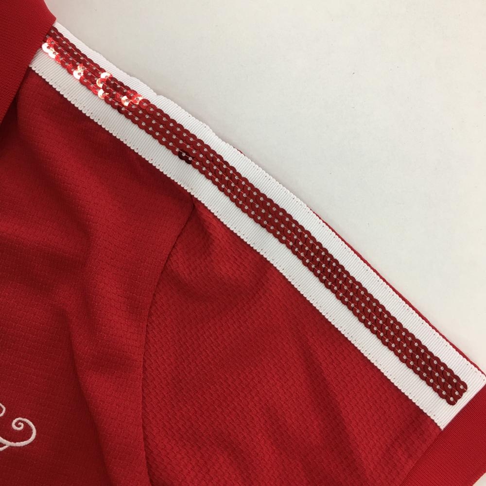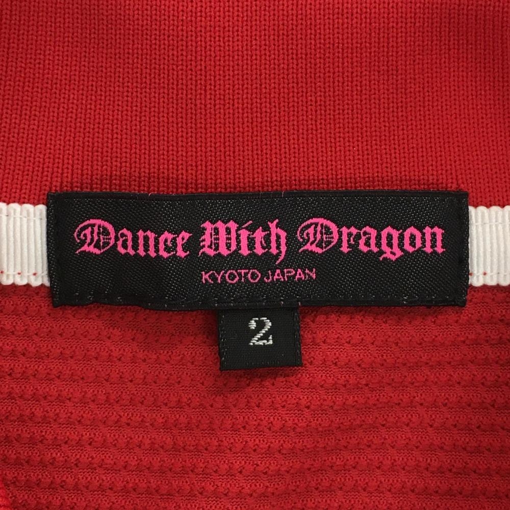 【超美品】ダンスウィズドラゴン 半袖ポロシャツ レッド×白 肩スパンコールライン メンズ 2(M) ゴルフウェア Dance With Dragon