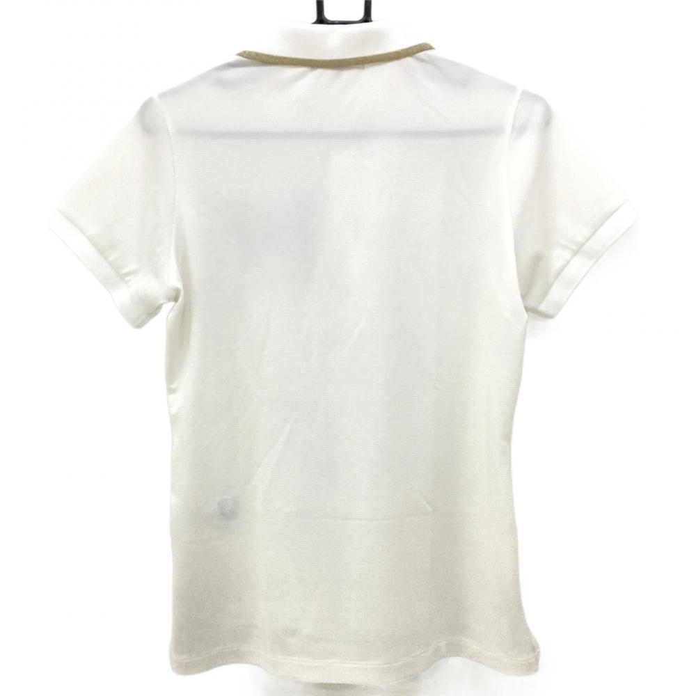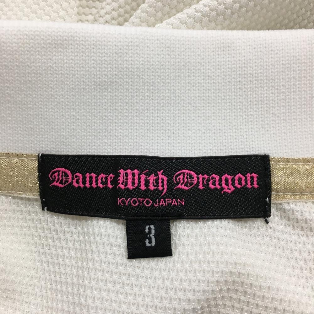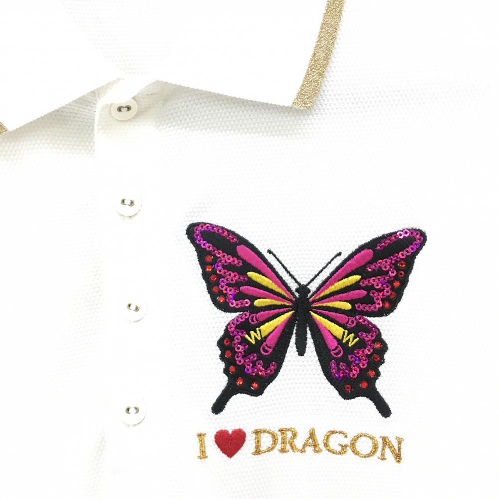 【美品】ダンスウィズドラゴン 半袖ポロシャツ 白 ビッグ蝶々刺しゅう 襟淵ゴールドラメ レディース 3(L) ゴルフウェア Dance With Dragon