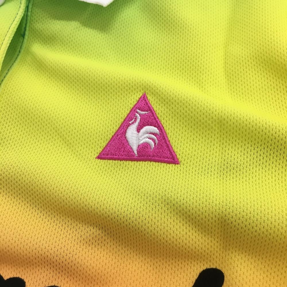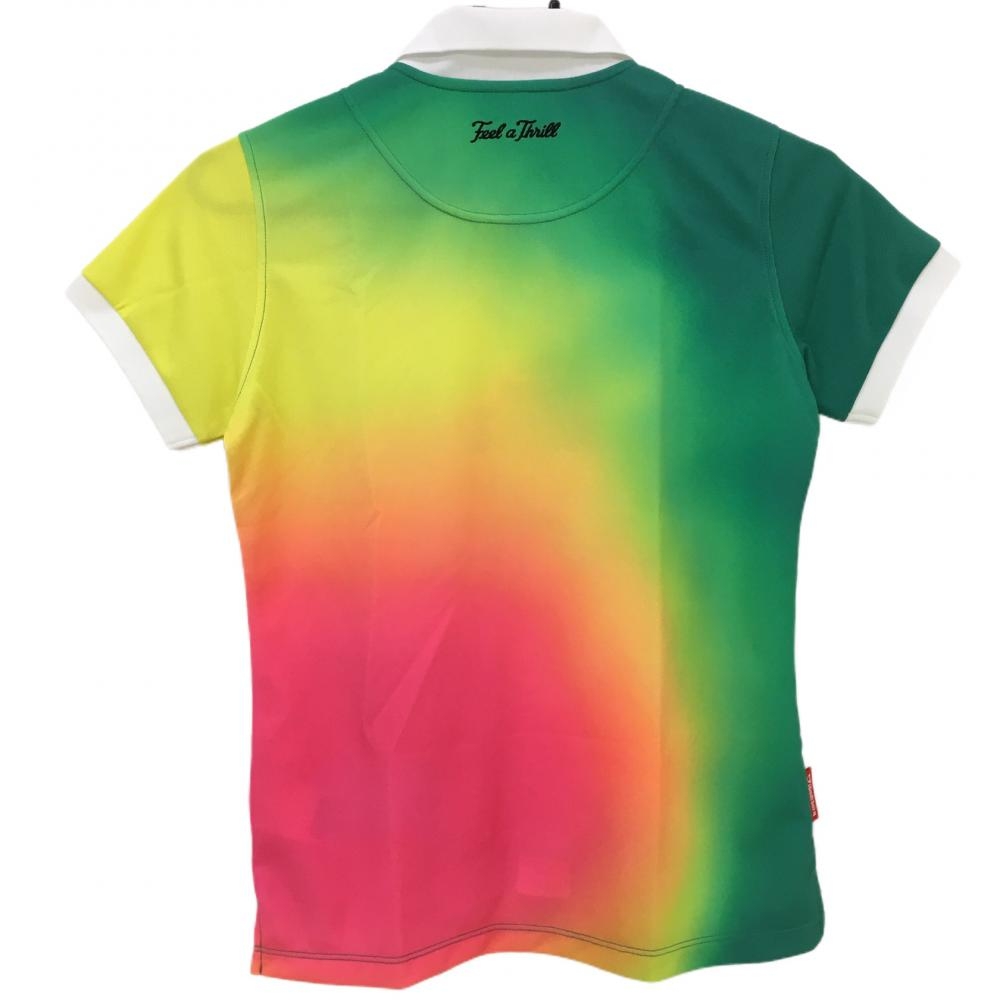 【超美品】ルコック 半袖ポロシャツ グリーン×イエロー×ピンク グラデーション プリント レディース M ゴルフウェア le coq sportif