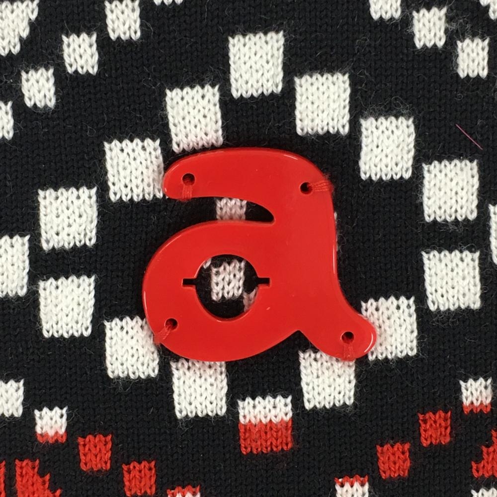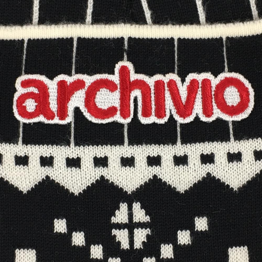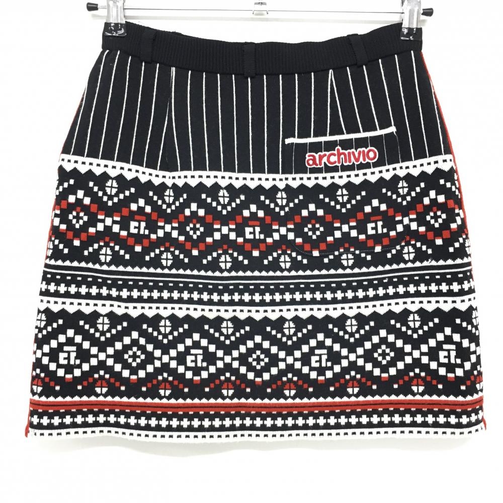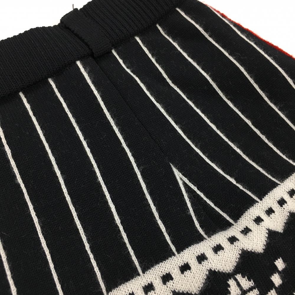 【美品】アルチビオ ニットスカート 黒×白×レッド 上部ストライプ ウール混 ウエストゴム レディース 36 ゴルフウェア archivio