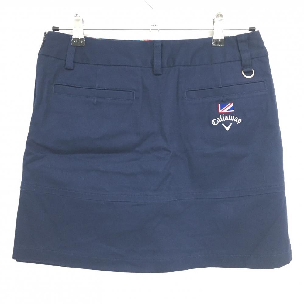 【超美品】キャロウェイ キュロットスカート ネイビー ウエスト裏チェック ゴールドボタン レディース L ゴルフウェア Callaway