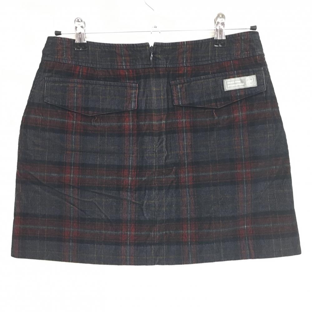 【美品】ゾーイ コーデュロイスカート グレー系×レッド チェック 内側インナーパンツ レディース 40(L) ゴルフウェア ZOY