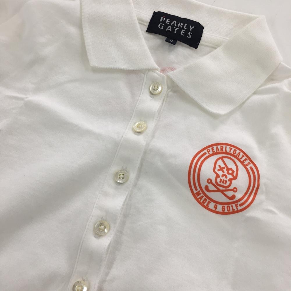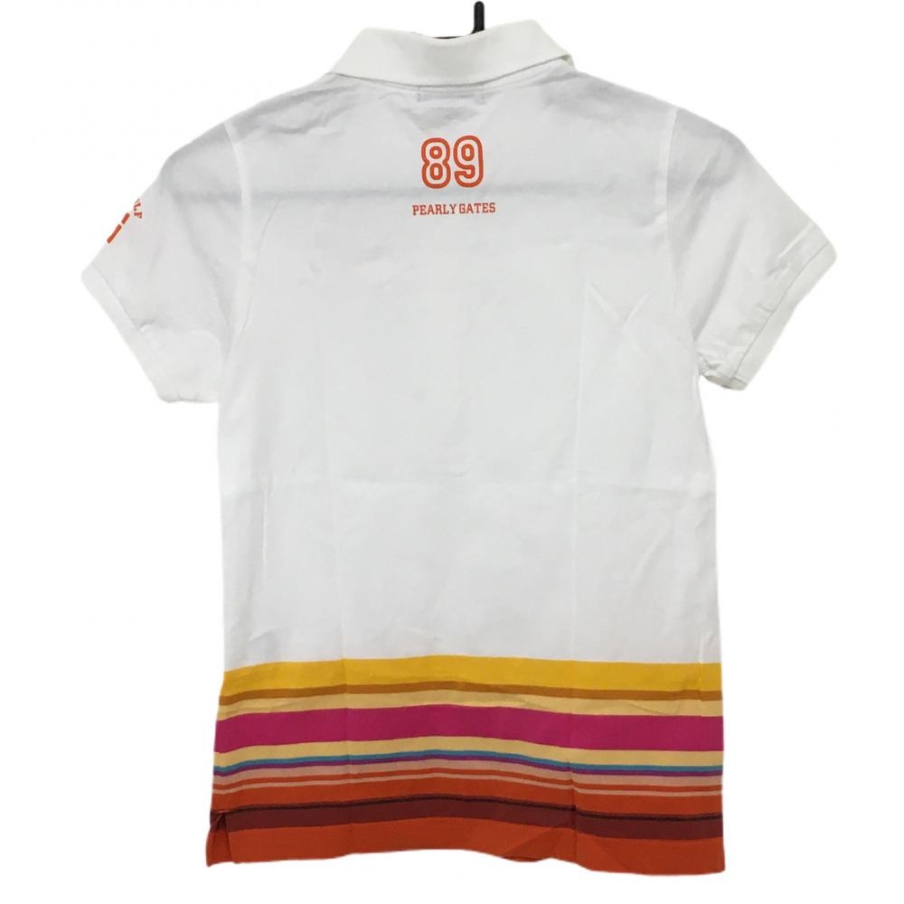 パーリーゲイツ 半袖ポロシャツ 白×オレンジ 裾ライン レディース 0(S) ゴルフウェア PEARLY GATES