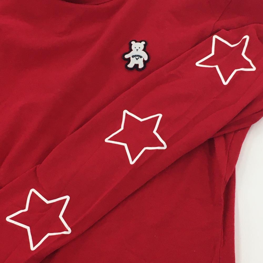【美品】キャロウェイ 長袖ハイネックシャツ レッド×白 ベア 袖星 レディース S ゴルフウェア Callaway