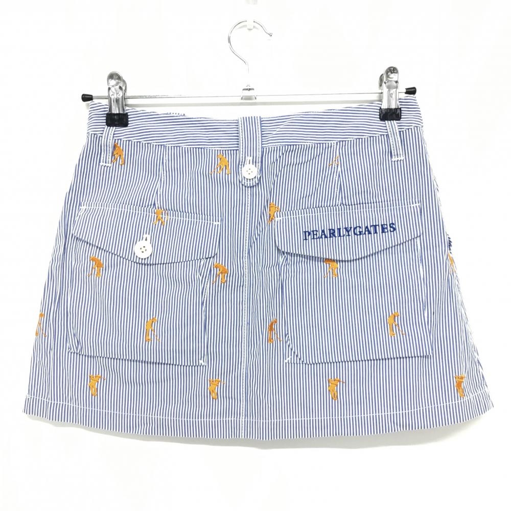 【美品】パーリーゲイツ スカート ネイビー×白 細ストライプ ゴルファー刺しゅう レディース 0(S) ゴルフウェア PEARLY GATES