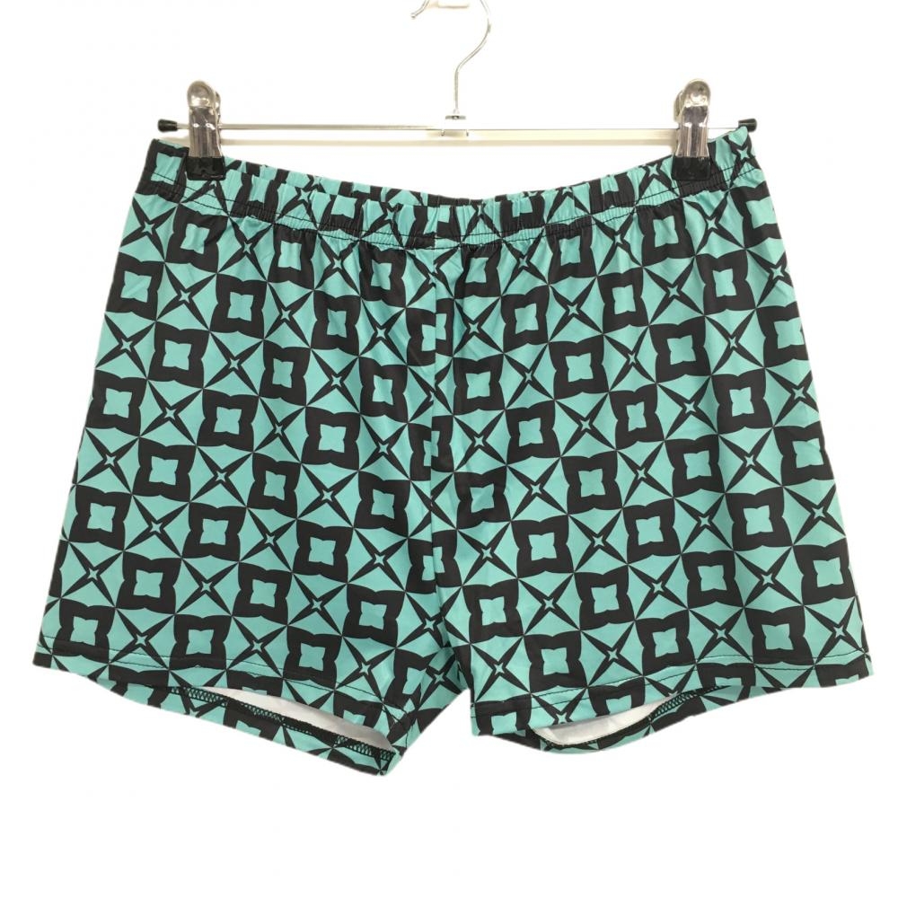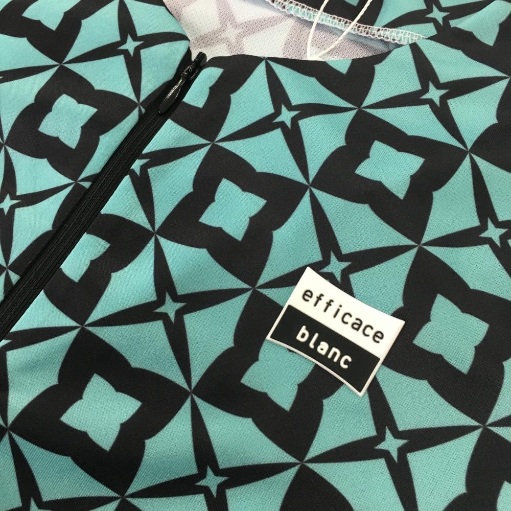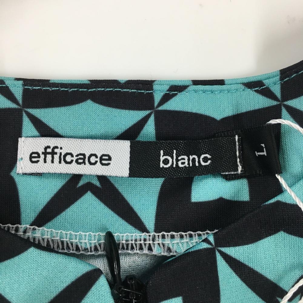 【新品】エフィカスブラン 半袖ワンピース ライトブルーグリーン×黒 総柄 ハーフジップ レディース L ゴルフウェア efficace