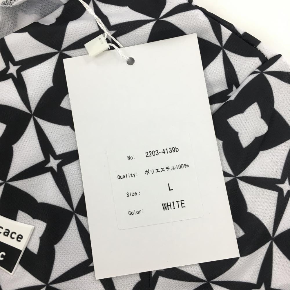 【新品】エフィカスブラン 半袖ワンピース 白×黒 総柄 ハーフジップ インナーパンツ付 レディース L ゴルフウェア efficace
