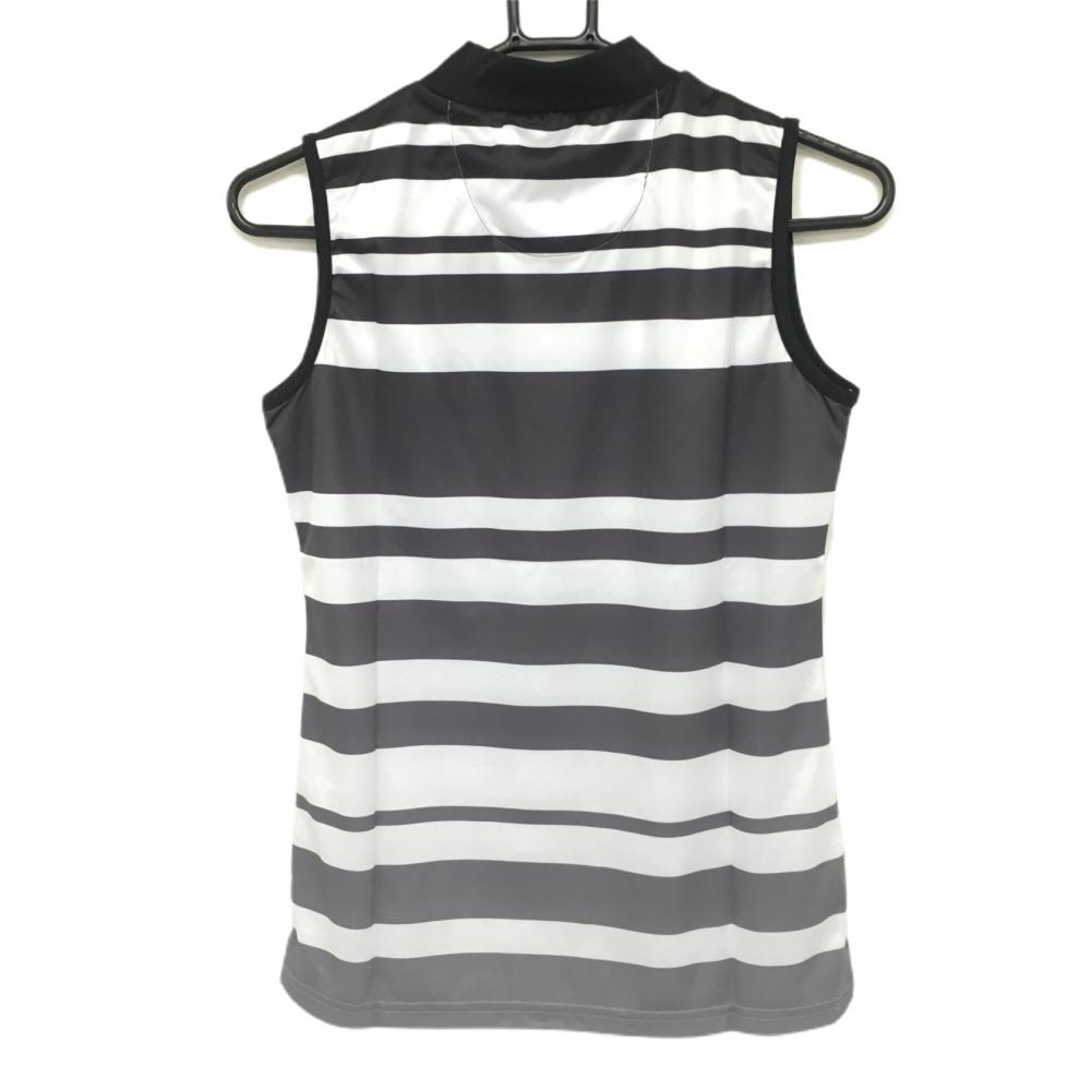 【新品】エフィカスブラン ノースリーブハイネックシャツ 黒×白 ボーダー グラデーション レディース S ゴルフウェア efficace