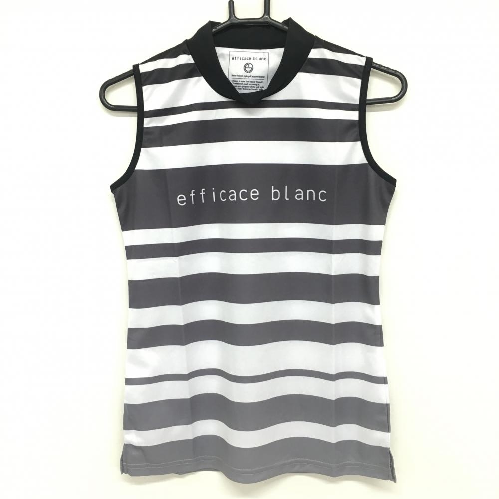【新品】エフィカスブラン ノースリーブハイネックシャツ 黒×白 ボーダー グラデーション レディース S ゴルフウェア efficace