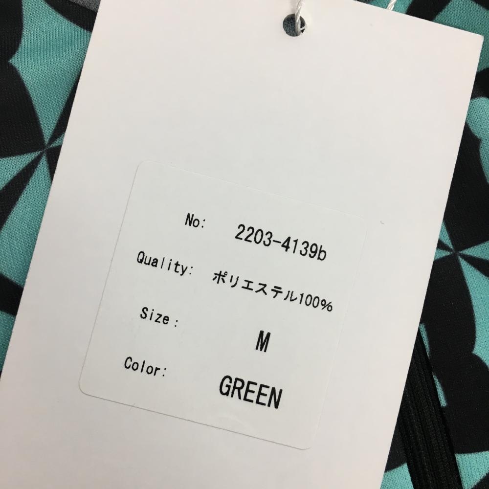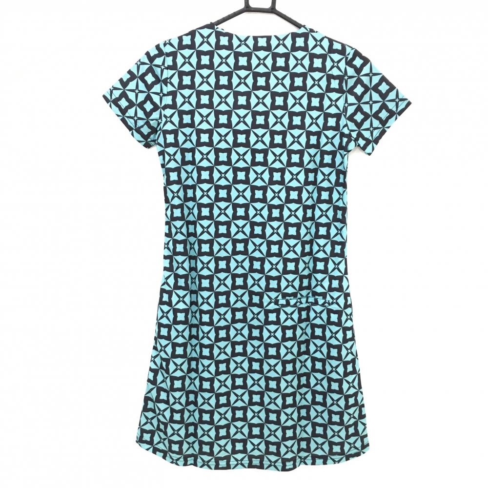 【新品】エフィカスブラン 半袖ワンピース ライトブルーグリーン×黒 総柄 ハーフジップ レディース M ゴルフウェア efficace