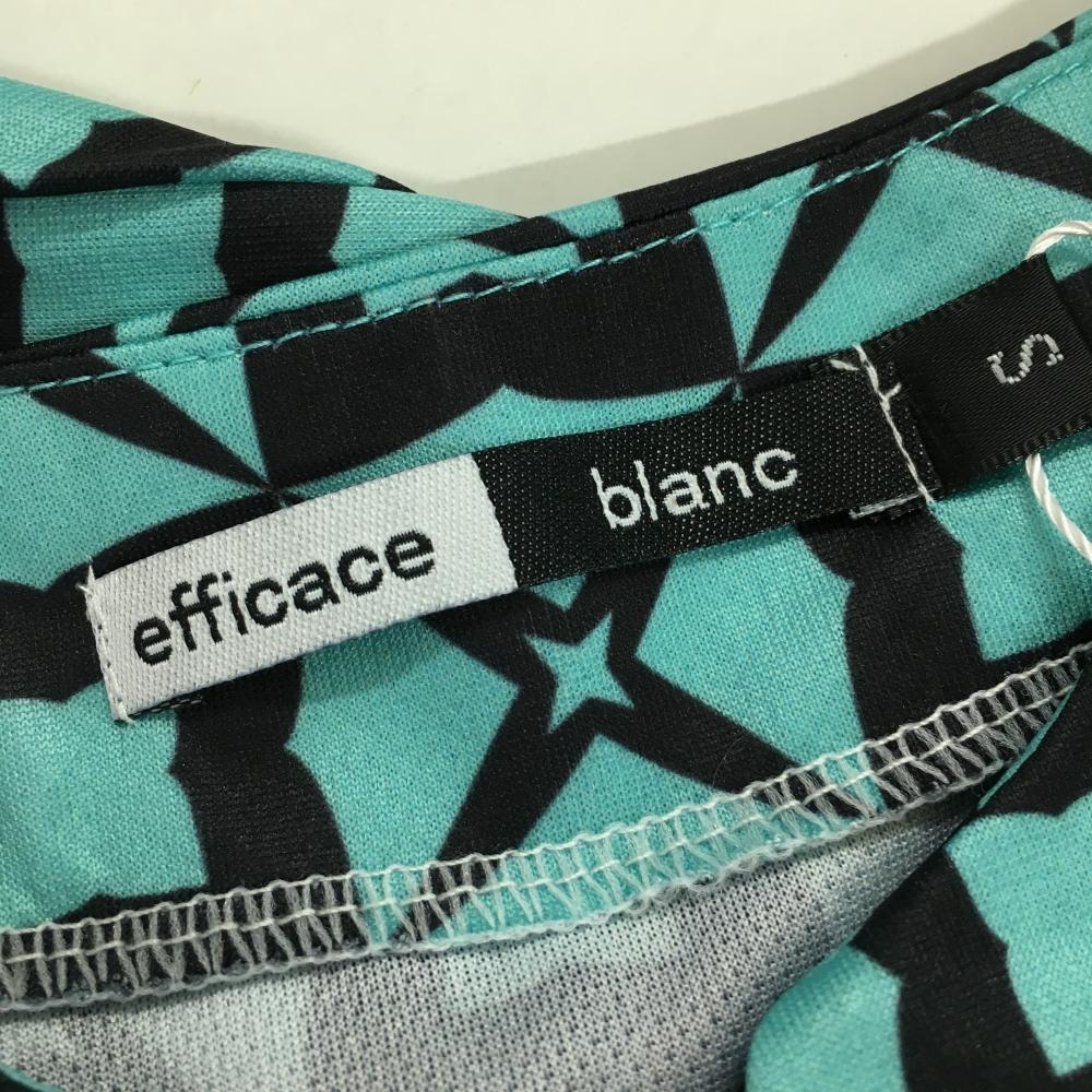 【新品】エフィカスブラン 半袖ワンピース ライトブルーグリーン×黒 総柄 ハーフジップ レディース S ゴルフウェア efficace